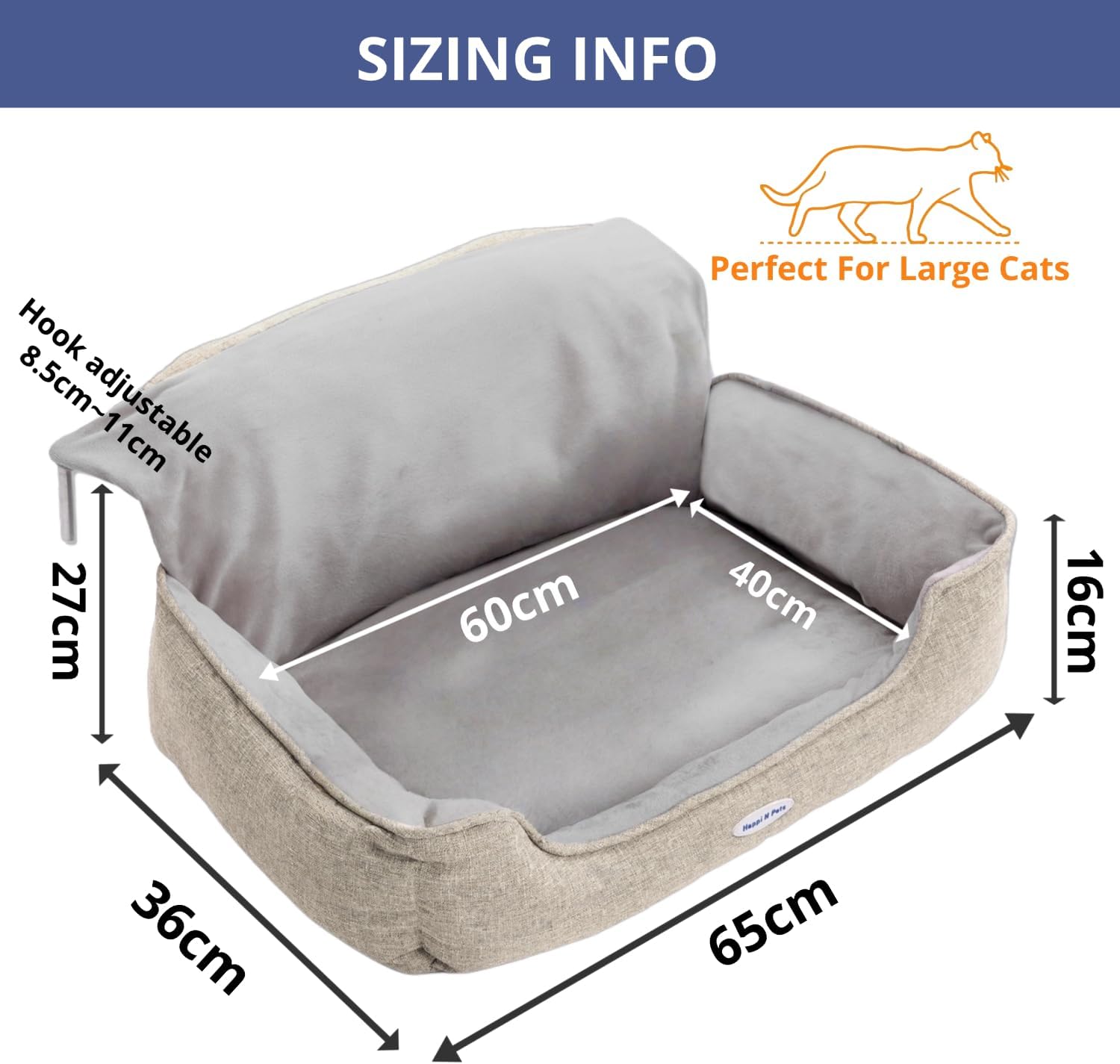 Happi N Pets Котешко легло за нагреватели, Пухкав котешки нагревателен шезлонг, Регулируема кука за различни нагреватели, Котешки хамак за нагреватели, Бежов (Бежов, L)
