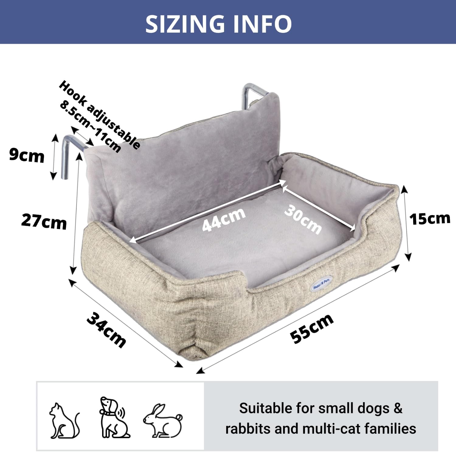 Happi N Pets Котешко легло за нагреватели, Пухкав котешки нагревателен шезлонг, Регулируема кука за различни нагреватели, Котешки хамак за нагреватели, Бежов