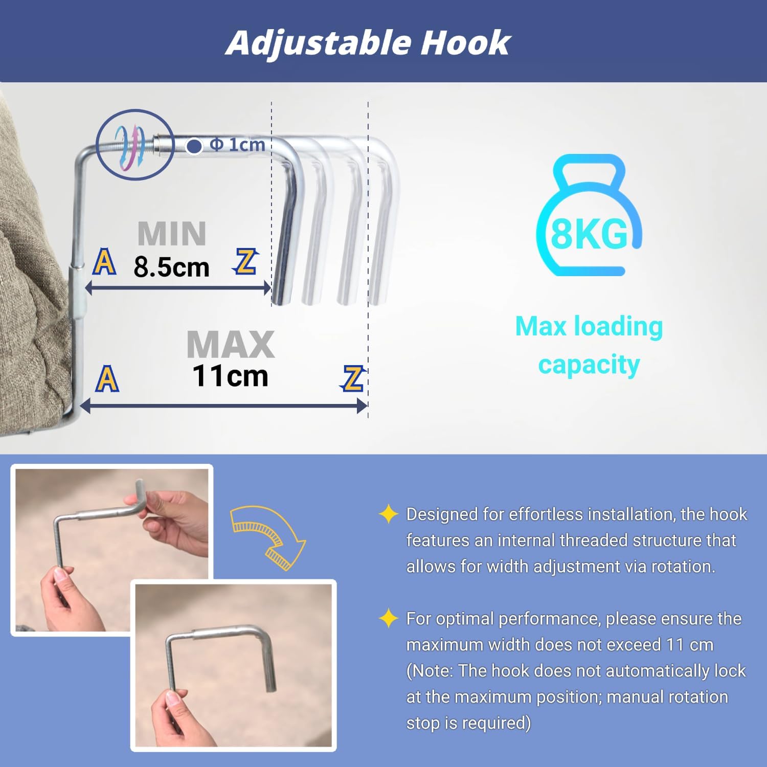 • 【Регулируема кука и приложение】Куката се регулира чрез завъртане от 8,5 см до 11 см, подходяща за повечето стенни радиатори/отоплятели. (Забележка: измерете предварително, ширината на вашия радиатор трябва да е поне 8,5 см и не повече от 11 см)
