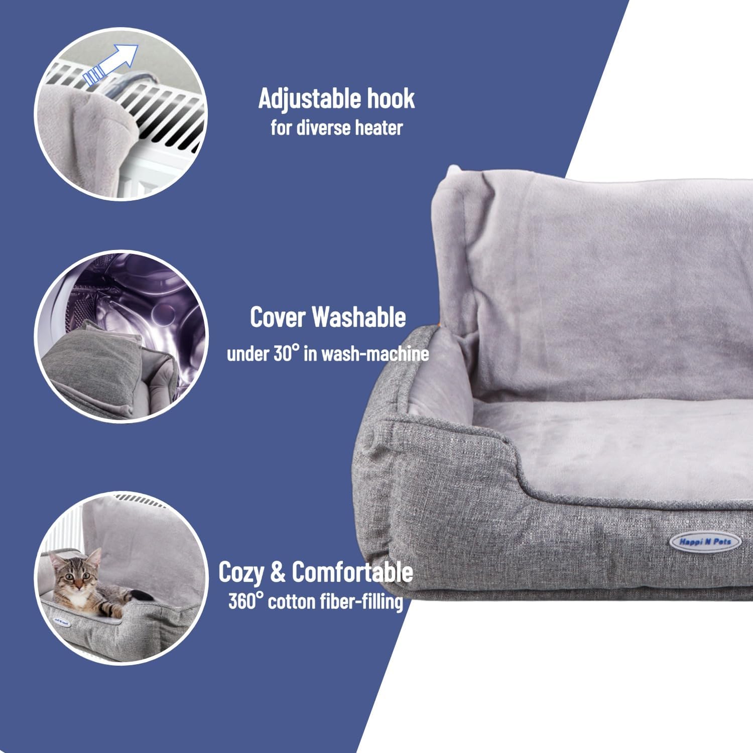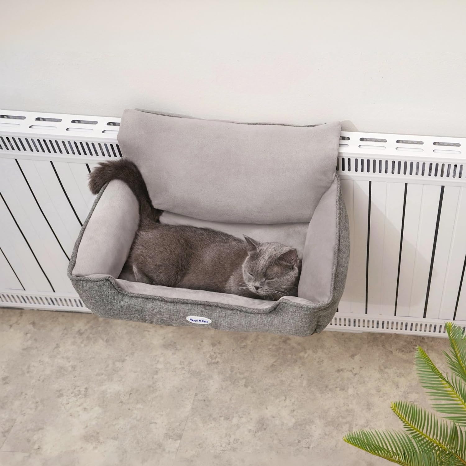 Happi N Pets Котешко легло за отоплителни уреди, Пухкав котешки отоплителен шезлонг, Регулируема кука за различни отоплителни уреди, Котешки хамак за отоплителни уреди, Сив