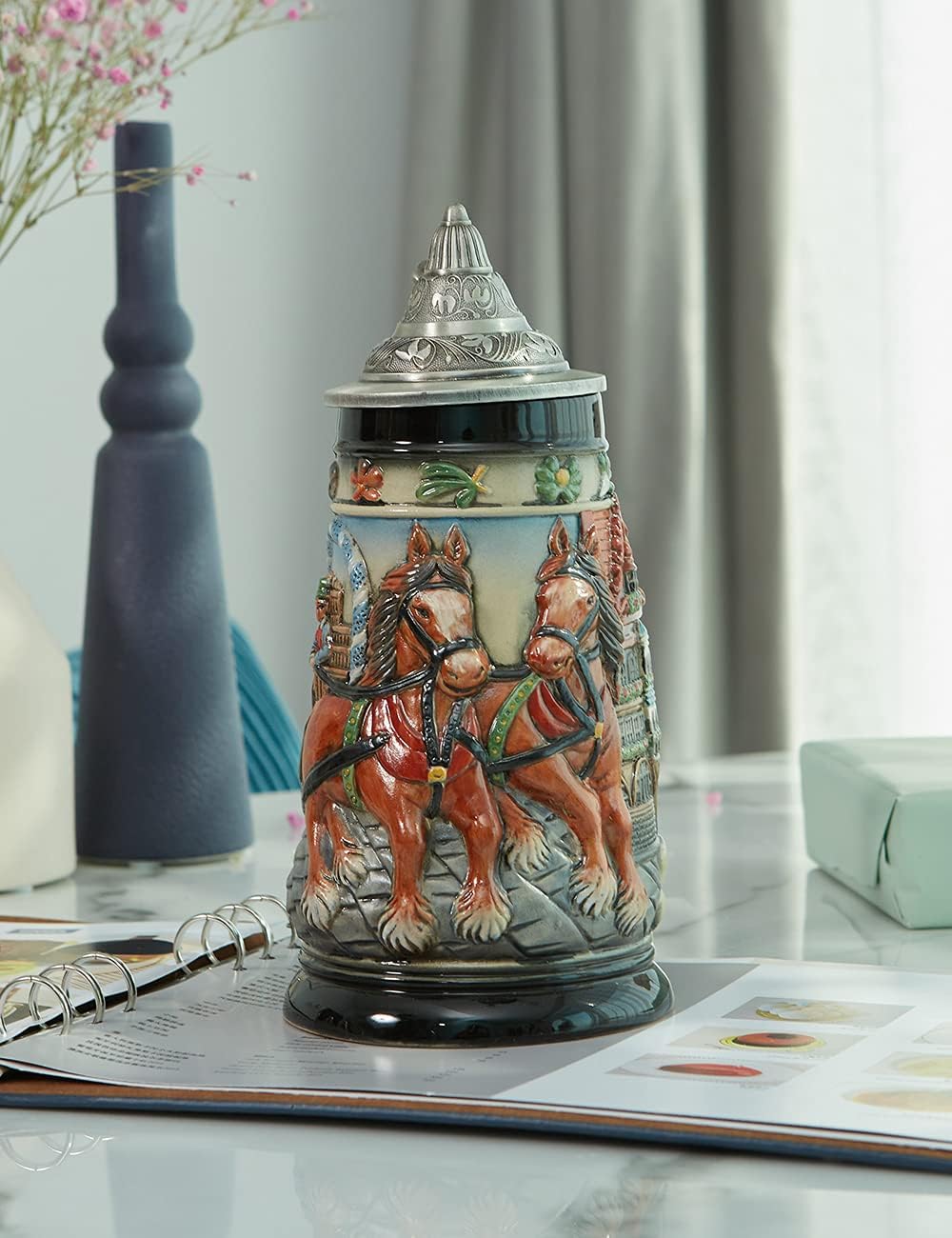 • 【ПЪРВОКЛАСНО КАЧЕСТВО】Височина 23 см и вместимост 0,8 литра, опакована в кутия с щампа, изработена от най-фината керамика. Халба за бира 100% без AZO с капак, изработен от перла.