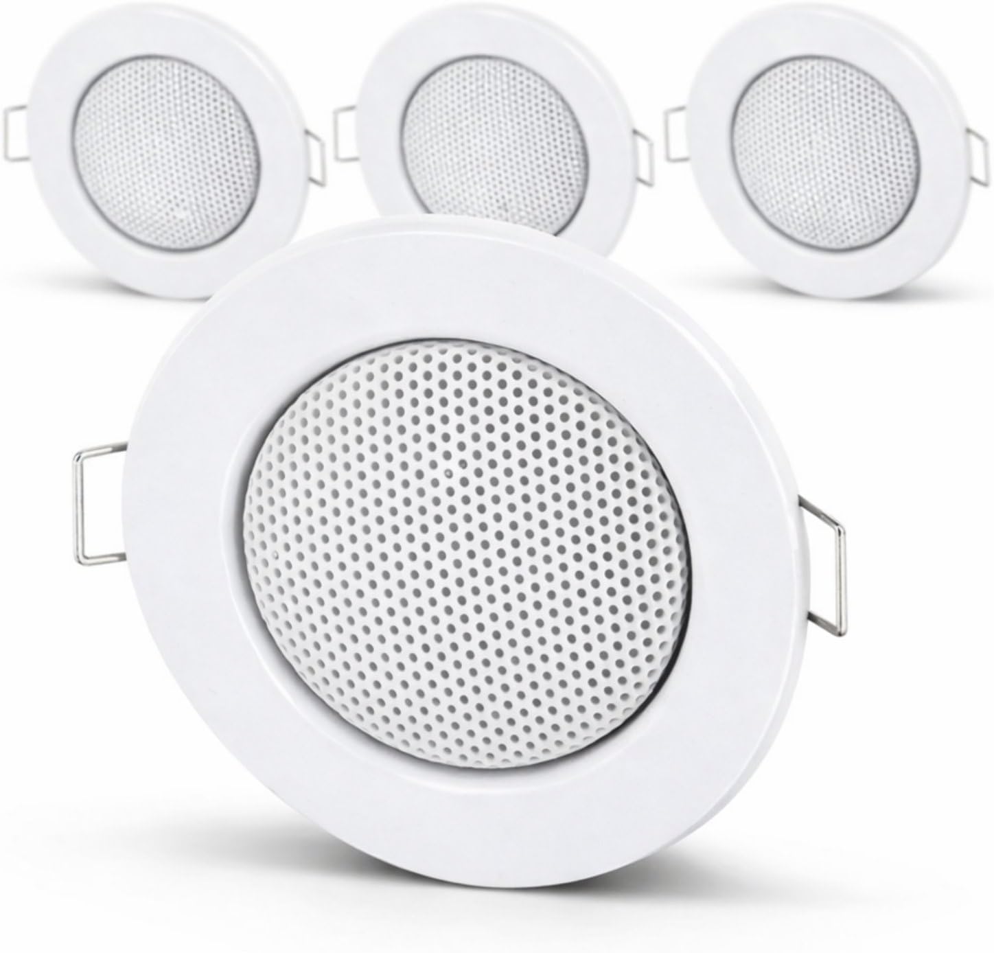 • Пакет от 4 - Изцяло метални вградени високоговорители за стенен и таванен монтаж с халогенен дизайн