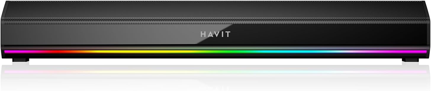 havit PC тонколони, 20W Bluetooth V5.3 компютърен саундбар с 3D съраунд звук, HiFi стерео, USB захранван RGB-осветен мониторен високоговорител за настолен компютър, лаптоп