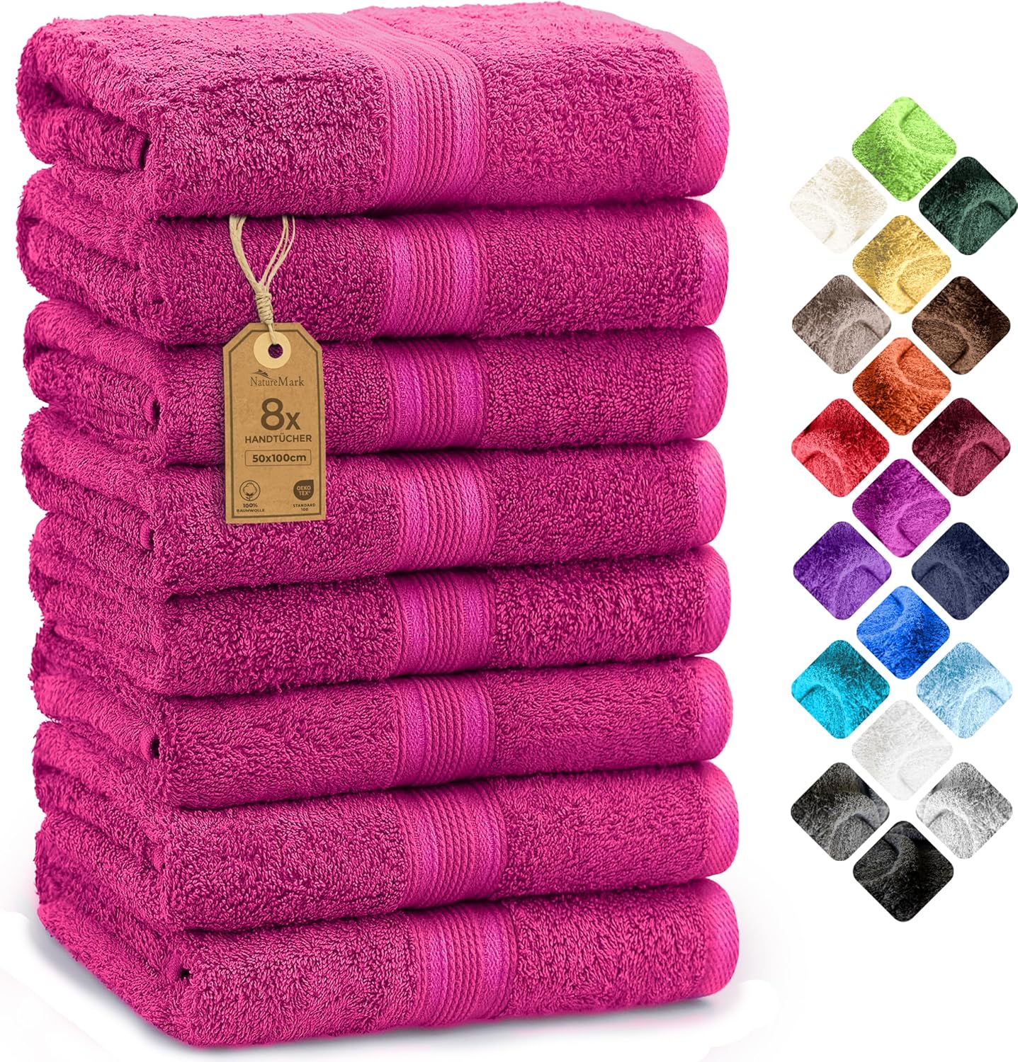 Хавлиени кърпи за ръце NatureMark NM-HT0860, пакет от 8, 50 x 100 см, 100% памук, розови