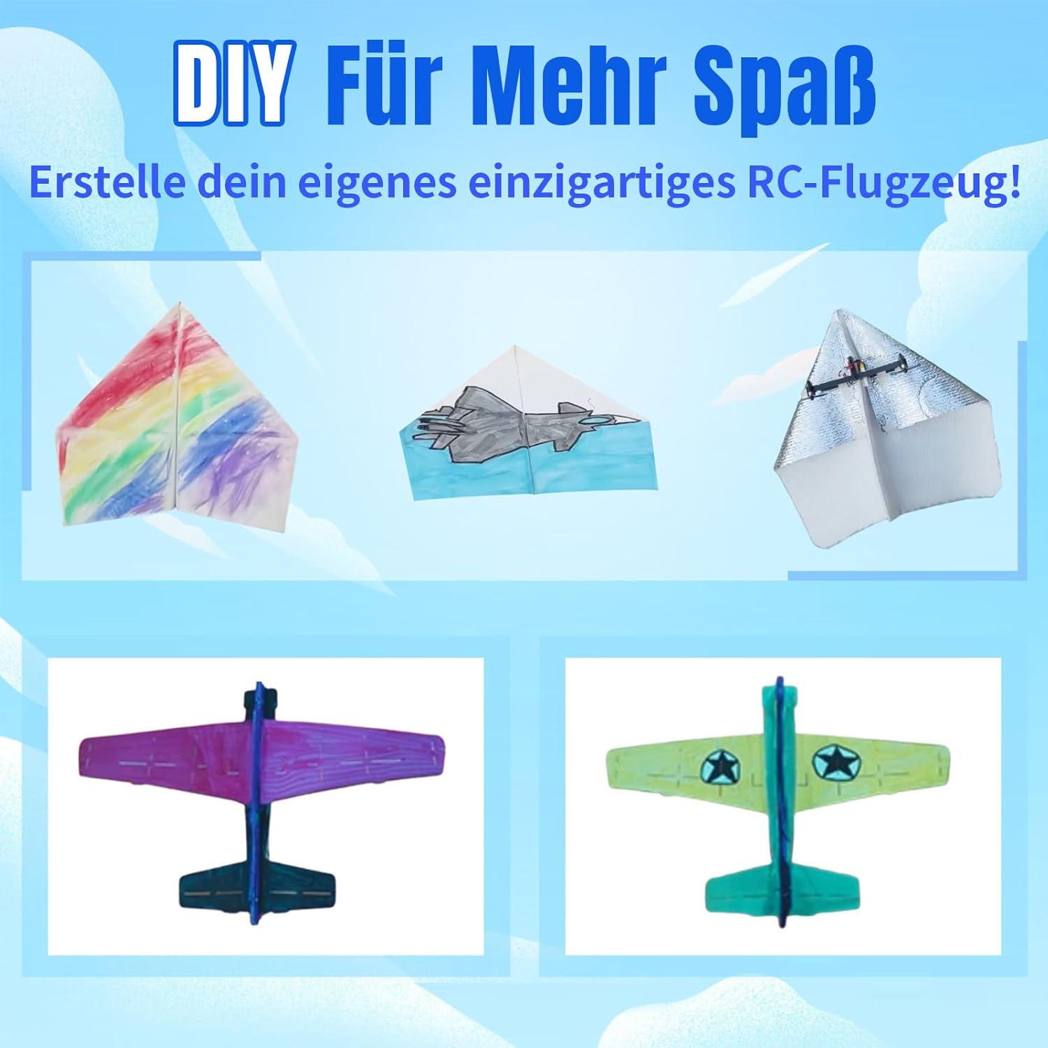 HAWK'S WORK RC Хартиен самолет, Дистанционно управляван самолет с цветни хартии, Супер лека играчка за летене за деца, Направи си сам STEM комплект (Birdy X 2.0)