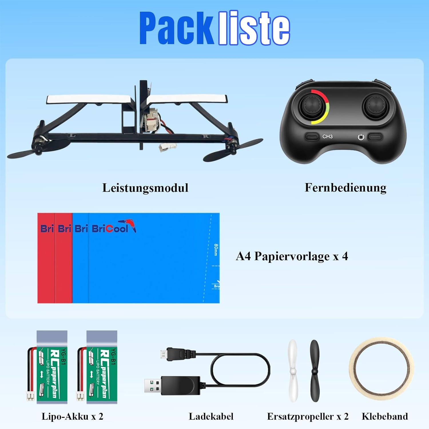 • С качество на сглобяване за следното – съдържа 4 цветни листа А4 (син x 2, червен x 2). Потребителите могат също да си направят свой собствен самолет от листове, вестници, картон и др.
