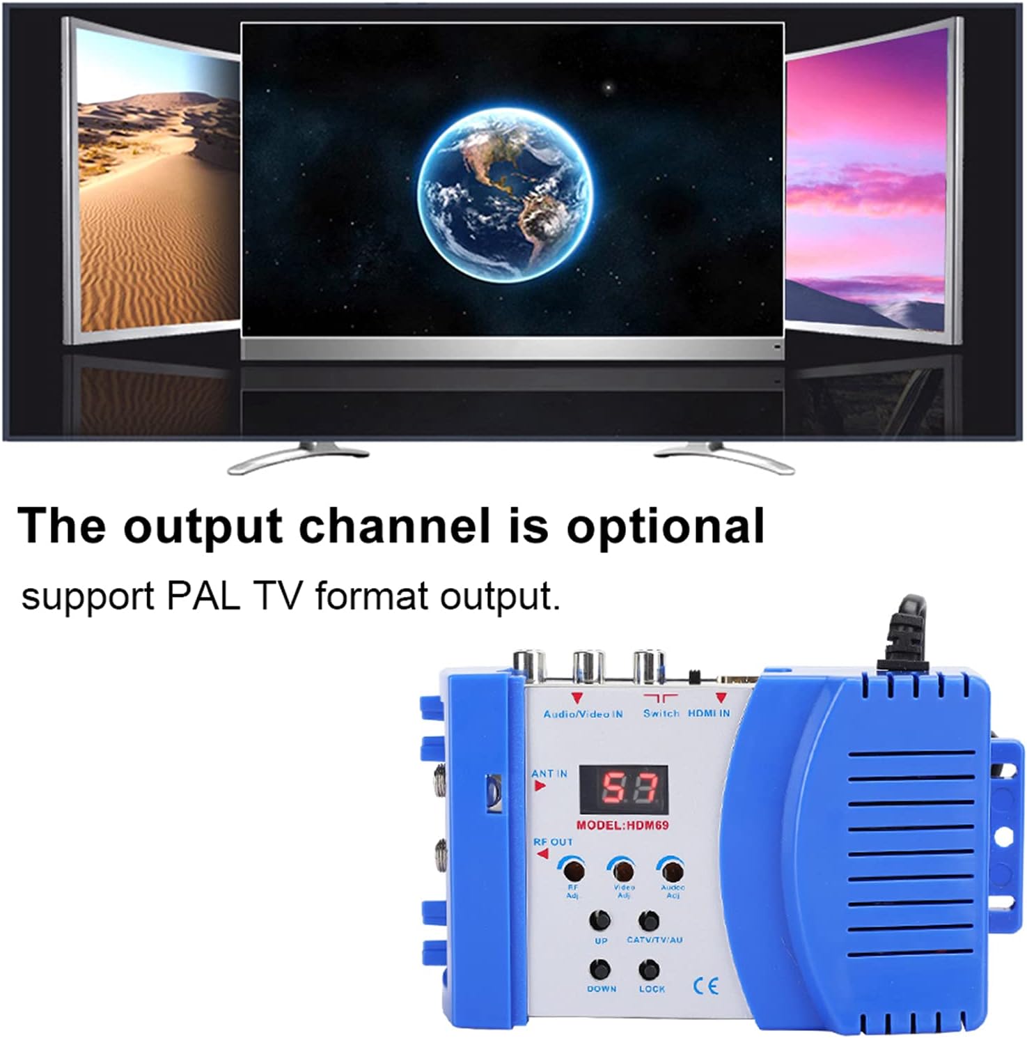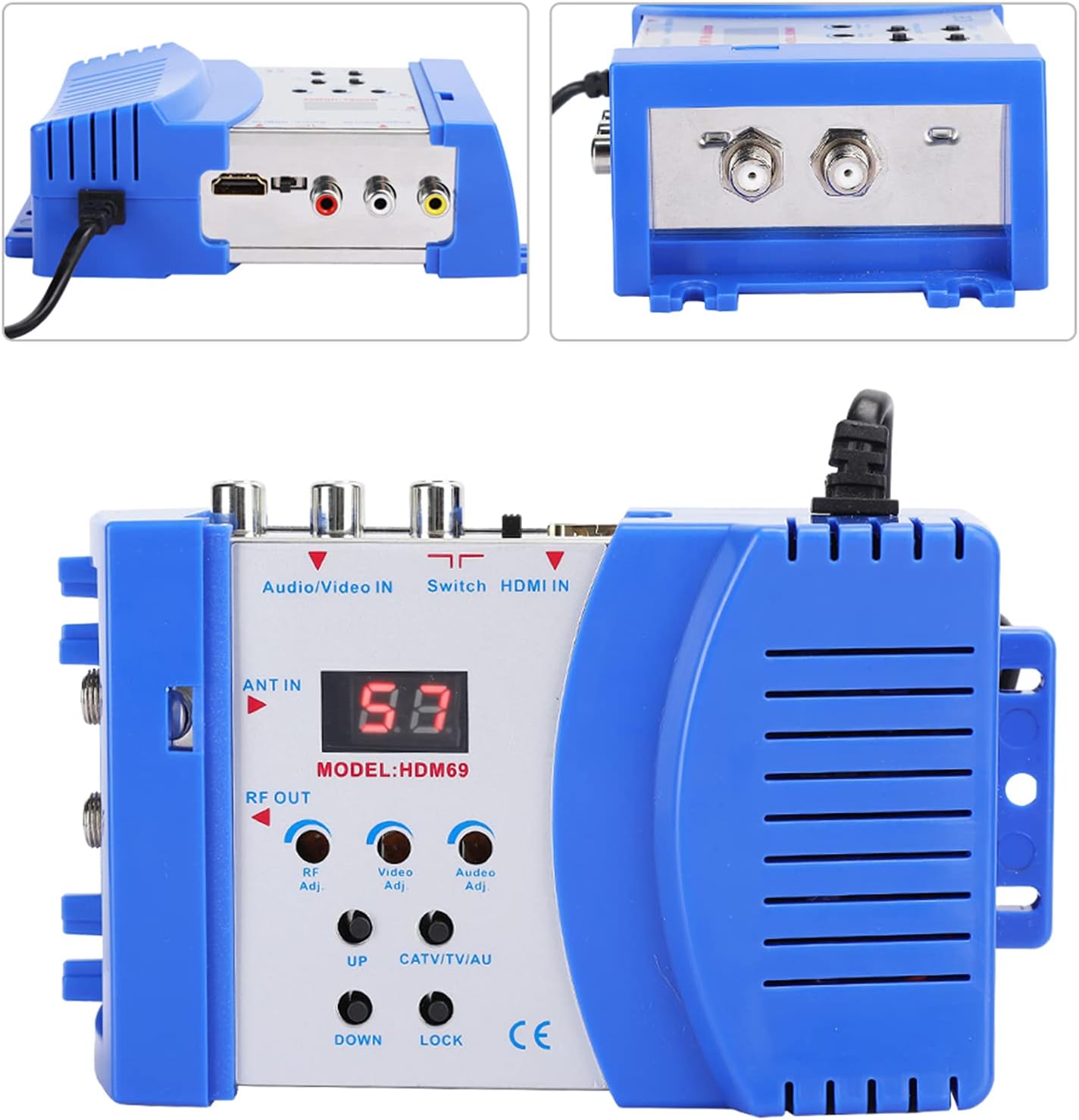 Широка съвместимост: Този AV към RF конвертор и HDMI модулатор поддържа VHF/UHF работни честоти, което го прави съвместим с широк спектър от устройства. С регулируемо изходно ниво и ниво на аудио/видео изход, можете лесно да адаптирате настройките към вашите нужди.