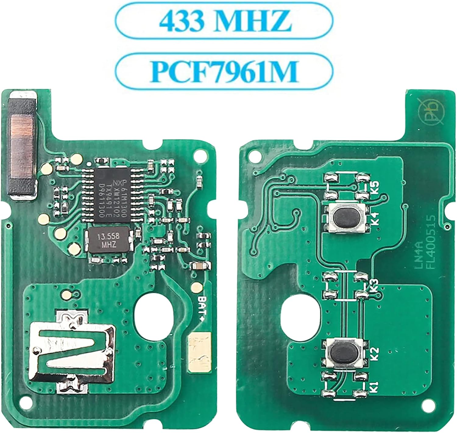 • Това ви позволява да смените износени или счупени корпуси на ключове за кола. Нов интелигентен ключ за дистанционно управление за Renault K. Основна честота 433 MHz, вграден чип, OEM номер на частта: PCF7961M (Моля, уверете се, че оригиналният ви ключ има същия външен вид, честота и тип чип, преди да закупите.)