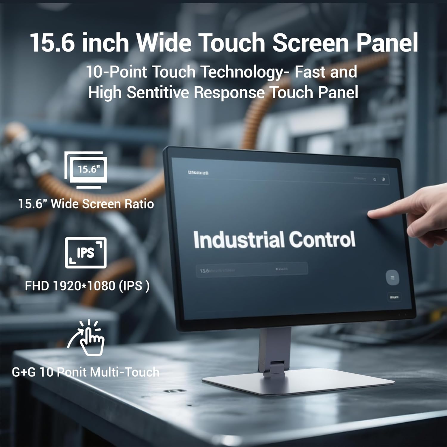 • 15,6-инчов сензорен компютърен панел – Оборудван с Full HD резолюция 1920x1080 за изключително остри изображения, този широкоекранен дисплей 16:9 осигурява оптимална съвместимост със специализиран софтуер. Този панелен компютър с Android разполага с високочувствителен G+G 10-точков капацитивен сензорен екран, който позволява прецизно и плавно взаимодействие с бърза реакция и поддържа допир с мокри ръце и ръкавици, което го прави подходящ за многостранни приложения в различни индустрии.