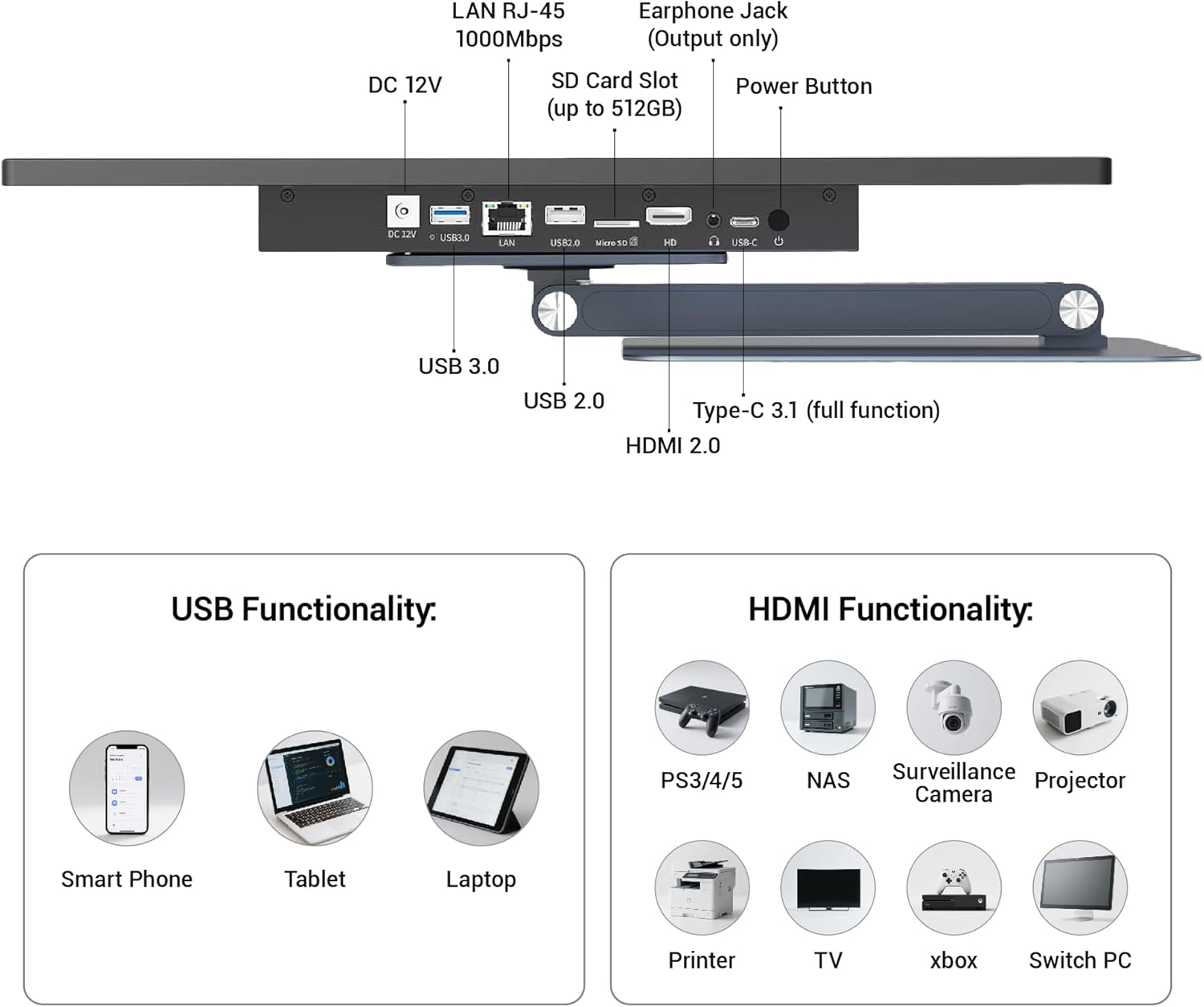 • Панелно устройство с гъвкава свързаност – Този индустриален мини компютър с панел е съвместим с различни индустриални контролери, дисплеи и монитори. Оборудван е с до 1 USB 3.0 порт, 2 USB 2.0 порта, 1 Type-C 3.1 порт (пълна функция), 1 RJ45 Gigabit Ethernet порт, 1 12V/3A DC захранващ вход и 1 аудио жак.