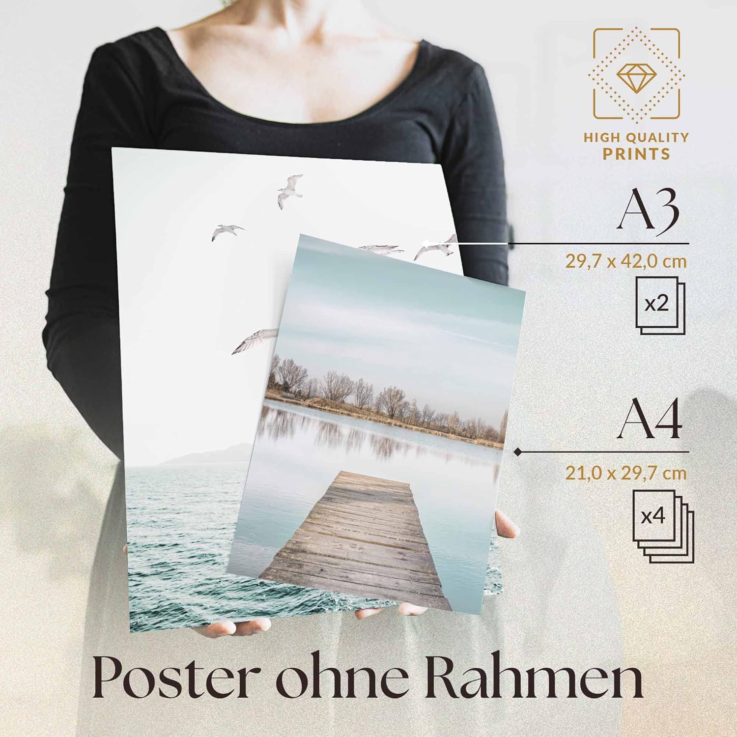 Heimlich - Комплект плакати - 2 A3 / 30x42см + 4 A4 / 21x30см - Премиум плакати - Нерамкирани принтове - Крайбрежен стил - Скандинавски морски плажни чайки