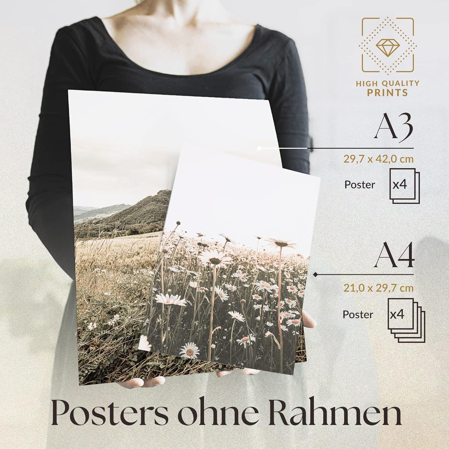• Премиум качество. Ясен арт принт върху много дебела хартия (300 г/м2, почти картон). Всяка картина е във формат DIN A4 (21,9 x 29,7 см) и се изпраща разгъната в елегантен плик. Като клиент на Prime, ще получите и бърза доставка!
