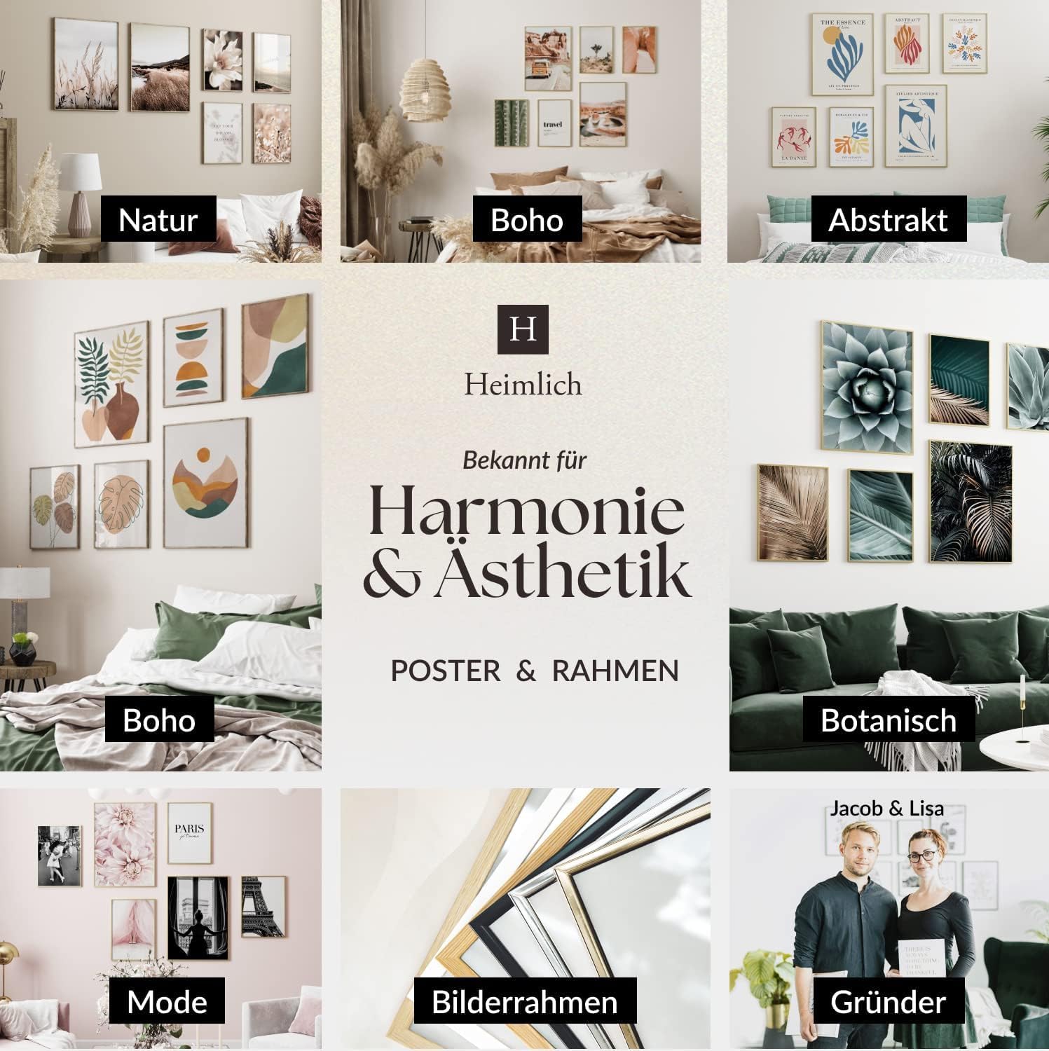 Heimlich - Комплект постери - 4 A3 / 30x42см + 4 A4 / 21x30см - Премиум постери - Нерамкирани щампи - Модерен стил - Флорален декор