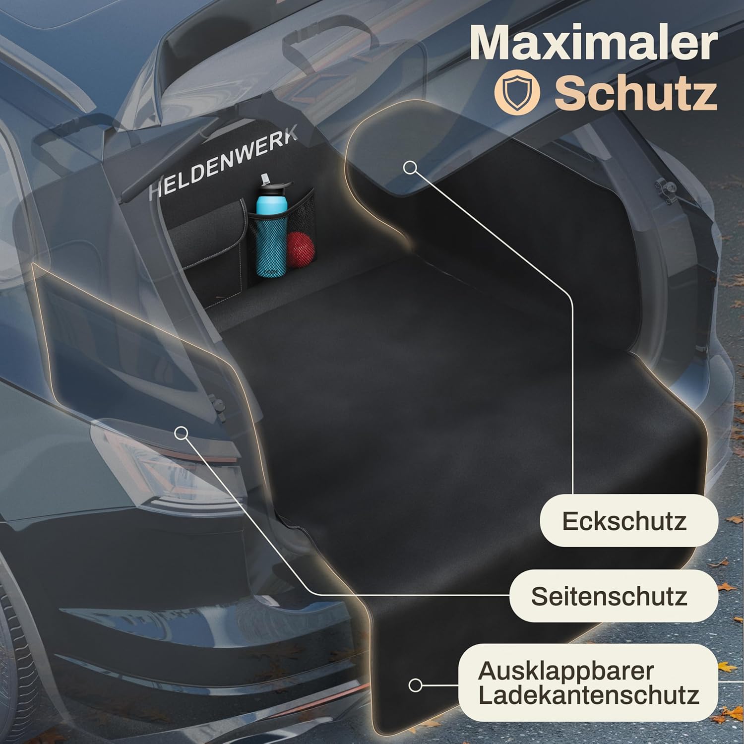 HELDENWERK Протектор за багажник на кола за кучета със странична защита и защита за прага на багажника, одеяло за кучета, водоустойчиво и устойчиво на надраскване за багажник на кола, универсална защитна постелка за багажник на кучета