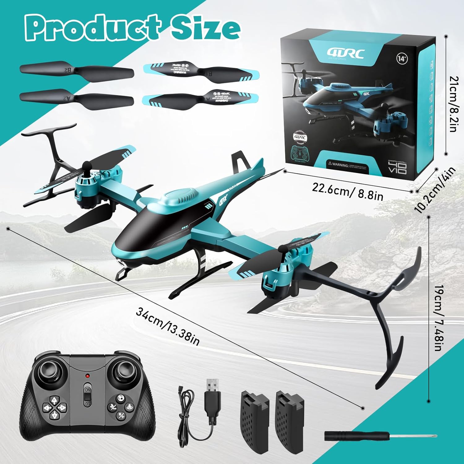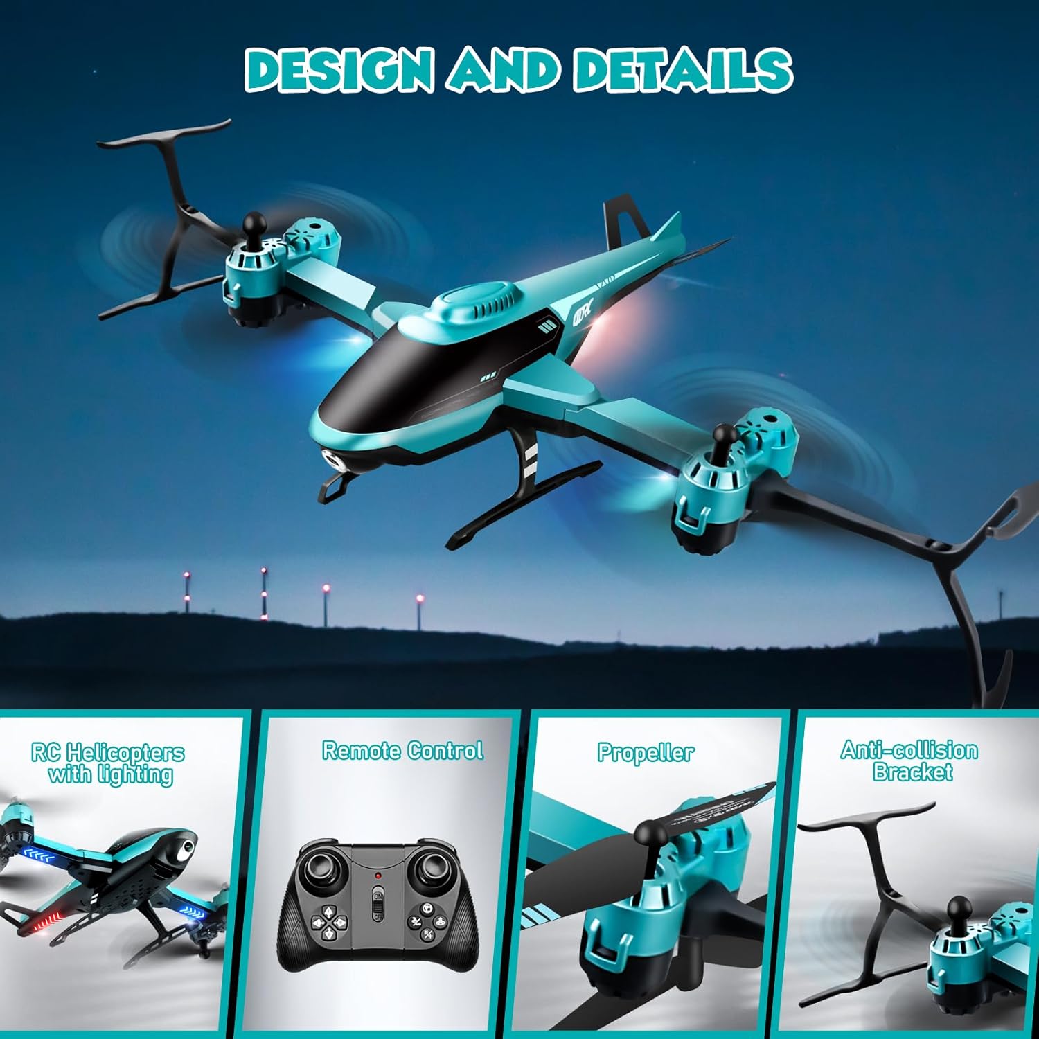 • Високо качество: висококачественият ABS материал е изключително издръжлив и удароустойчив, лек, издръжлив и лесен за почистване и осигурява плавен полет. LED осветлението за нощни полети и дизайнът със защита срещу загуба осигуряват допълнителна безопасност. Включени са 2 бързо зареждащи се батерии (60 минути време за зареждане/20 минути време за полет), дистанционното изисква 3 AAA батерии (не са включени).