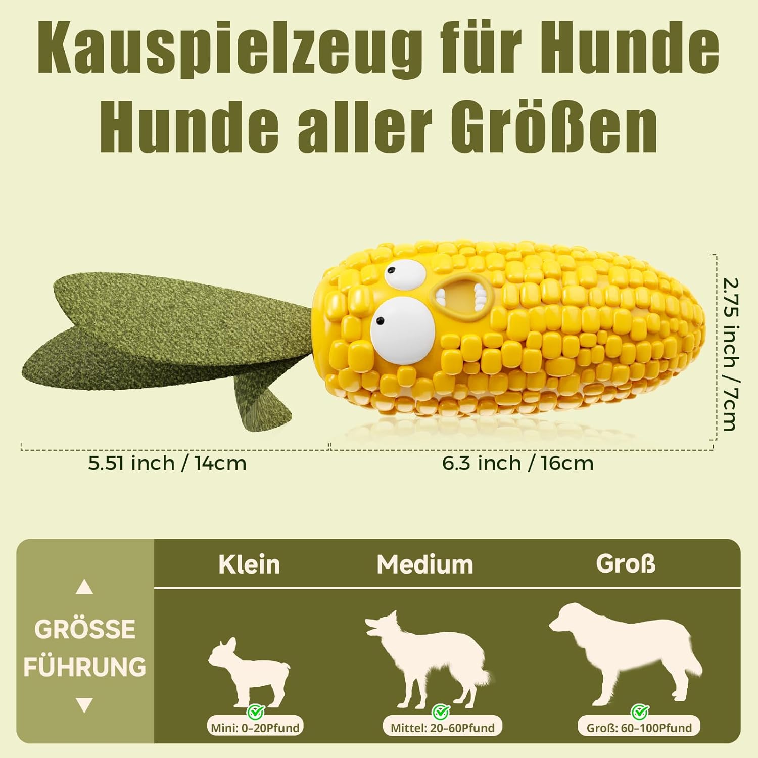 HETOO Играчка за кучета, Неразрушима играчка за големи кучета, Дъвчаща играчка за агресивно дъвчене, Здрава, Издръжлива, Дъвчаща играчка от естествен каучук за средно големи кучета (царевица)