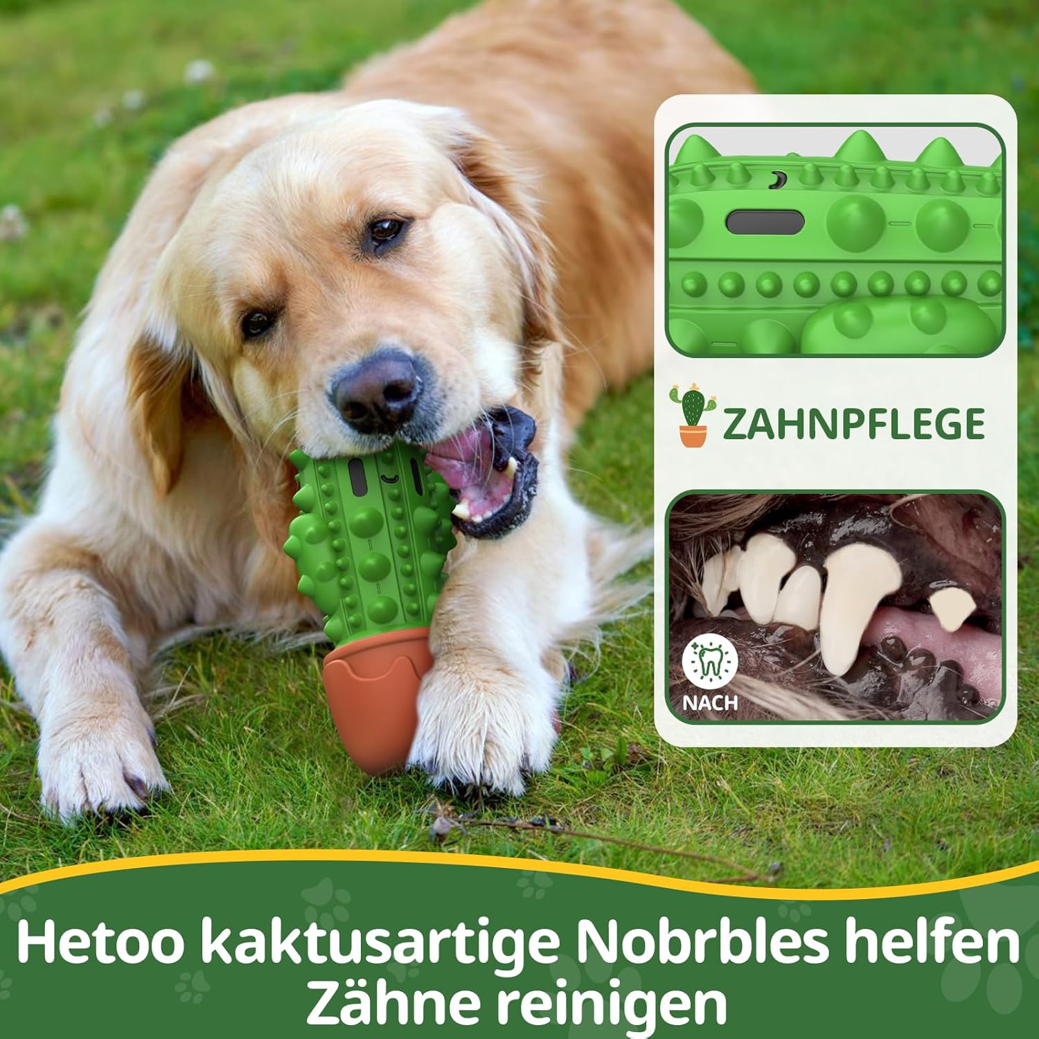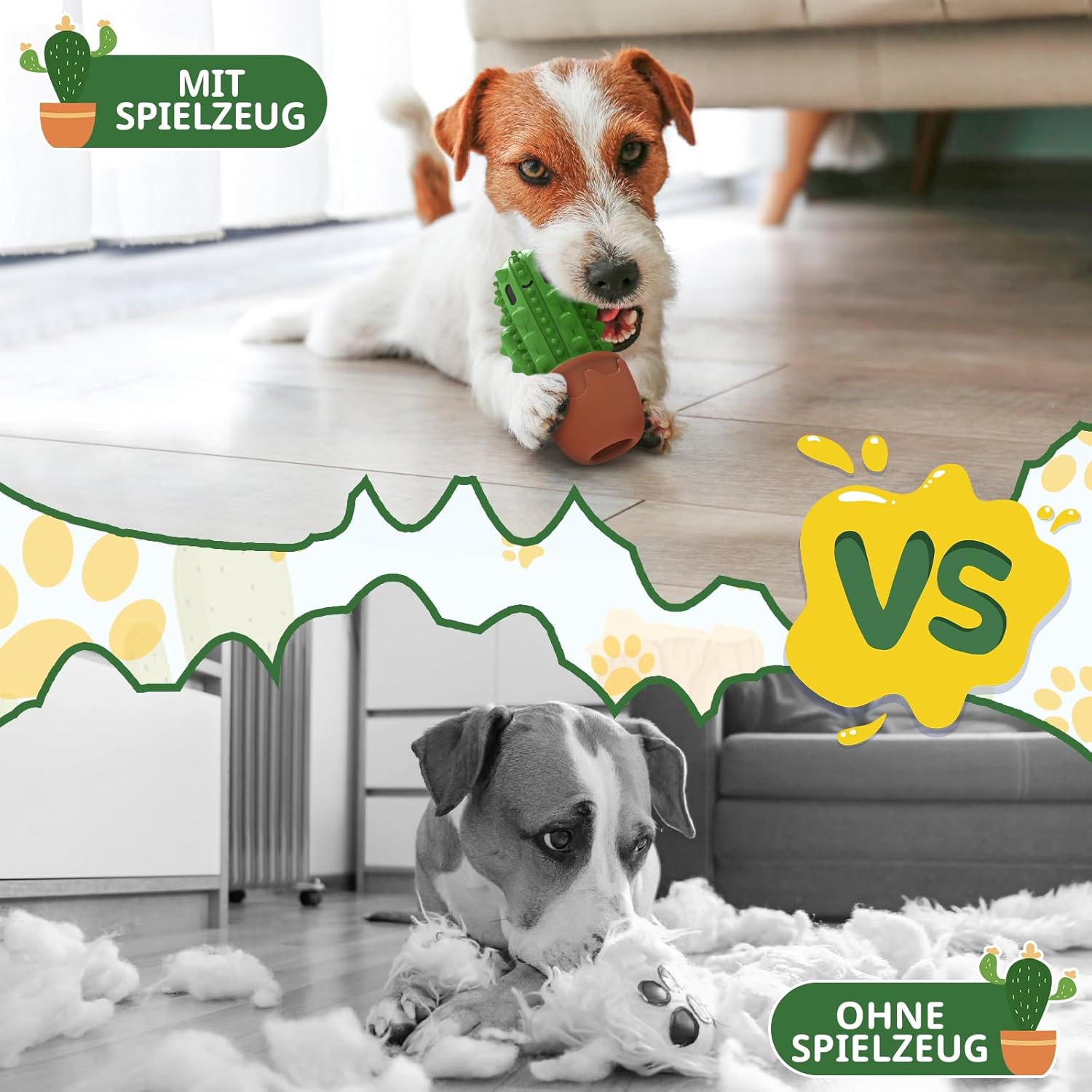 HETOO Играчка за кучета за агресивно дъвчене, играчка за дъвчене, почти неразрушима, скърцаща играчка за кучета със средни размери, здрава и издръжлива гумена играчка за кучета (кактус в саксия)