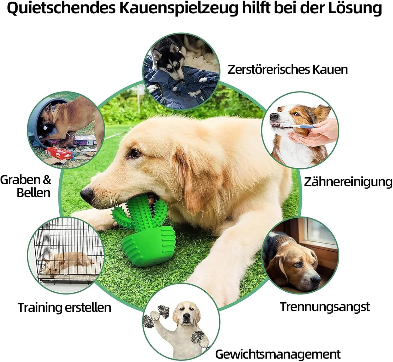 HETOO Играчка за кучета за агресивно дъвчене, Почти неразрушима играчка за дъвчене, Скърцаща играчка за кучета за средни кучета, Здрави и издръжливи гумени играчки за кучета (кактус)