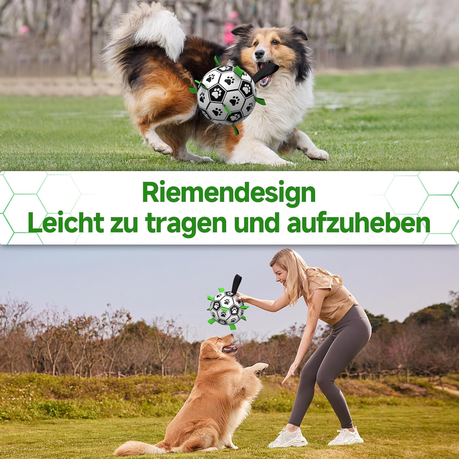 • Топка за кучета с презрамки: Найлоновата каишка на топката осигурява радост както за любителите на кучета, така и за техните космати приятели. Можете да играете игри на дърпане на въже, гонене или изследване и, разбира се, много други нови възможности за игра ви очакват да бъдат отключени от вас.