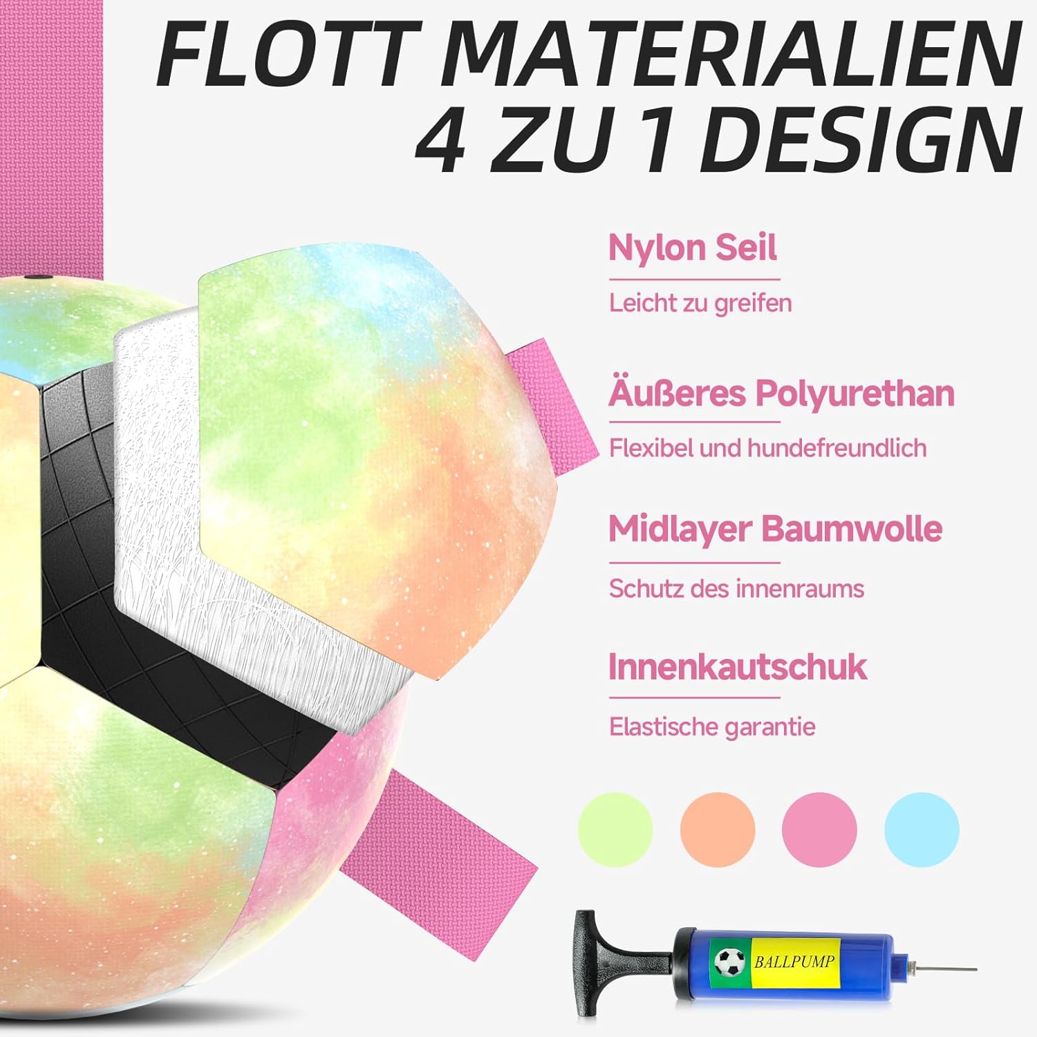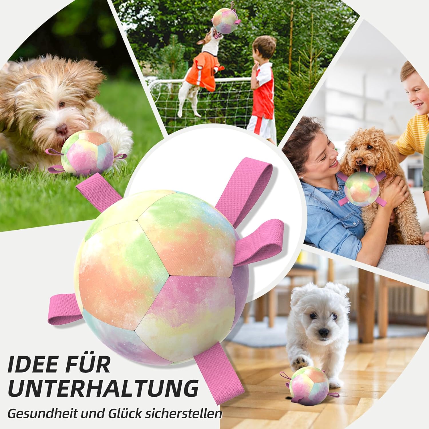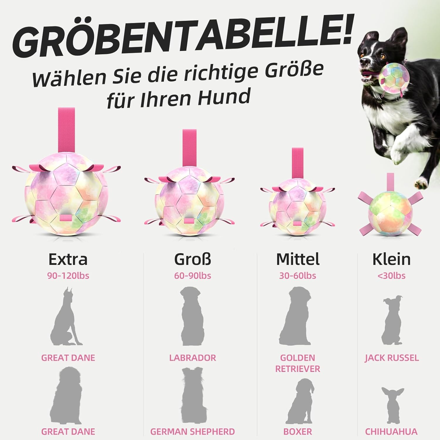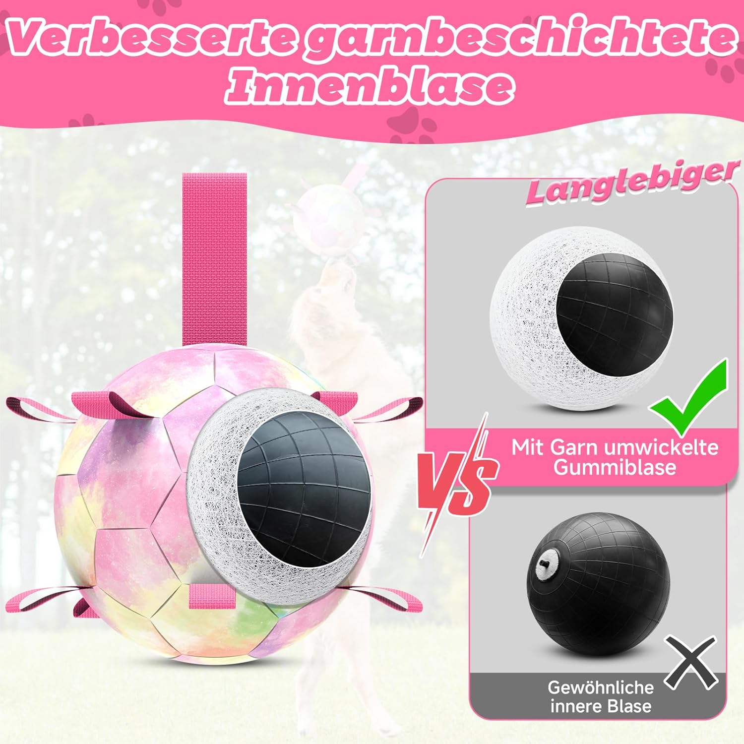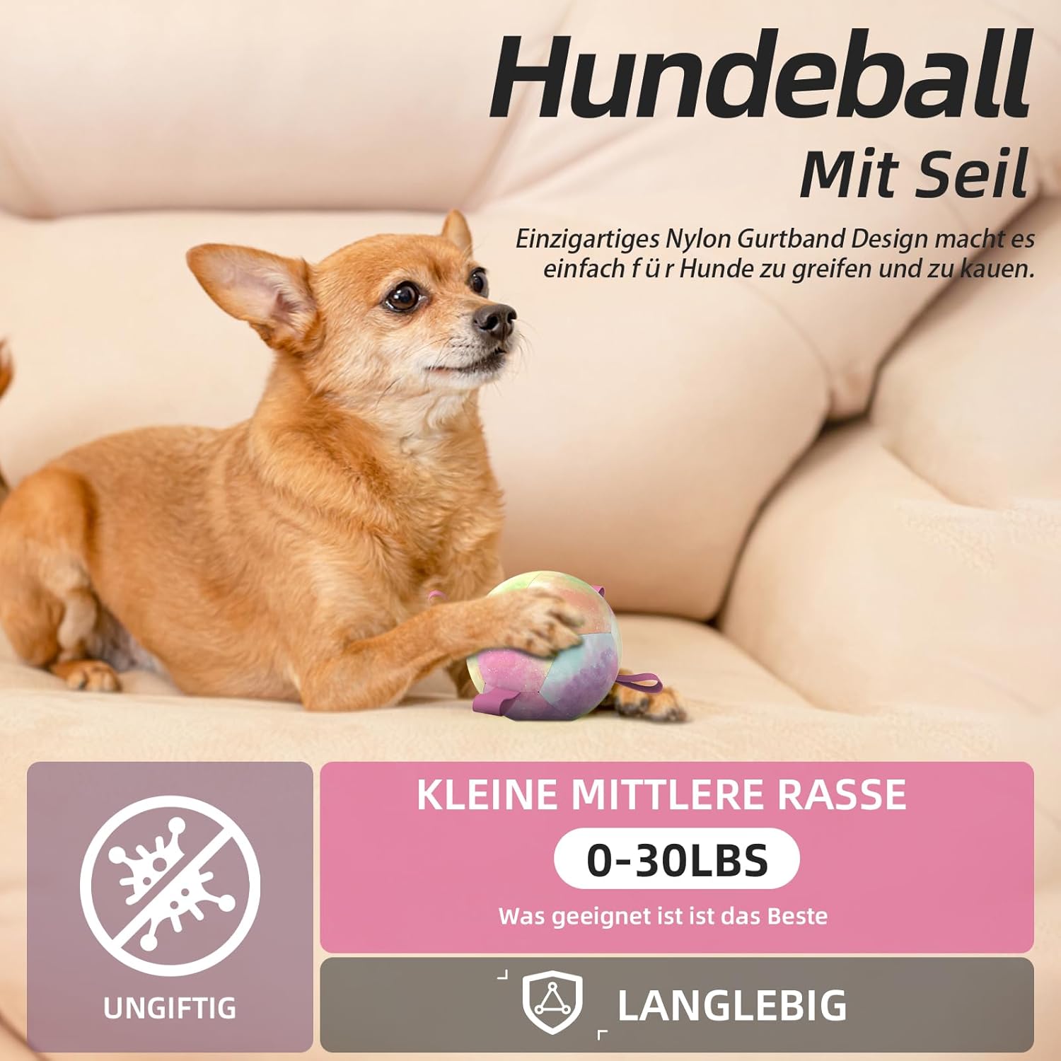 • Топка за кучета с презрамки: Найлоновата каишка на топката осигурява радост както за любителите на кучета, така и за техните космати приятели. Можете да играете игри на дърпане на въже, гонене или изследване и, разбира се, много други нови възможности за игра ви очакват да бъдат отключени от вас.