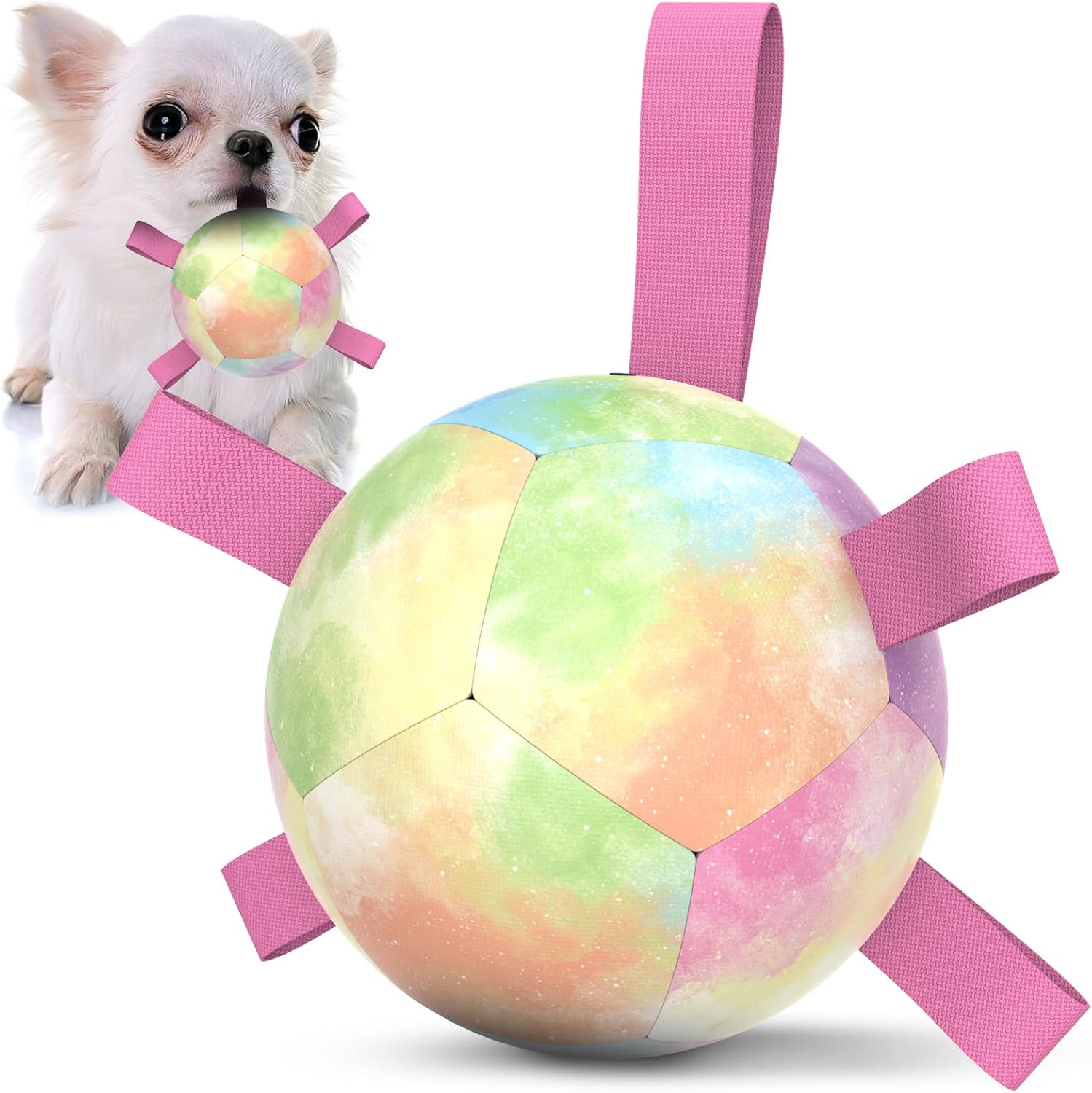 HETOO Кучешка топка Играчка за кучета с дръжка за кучета Интерактивна теглеща война Водни топки за кучета Играчка Подарък за рожден ден за малки/средни кучета (5 инча розов градиент)