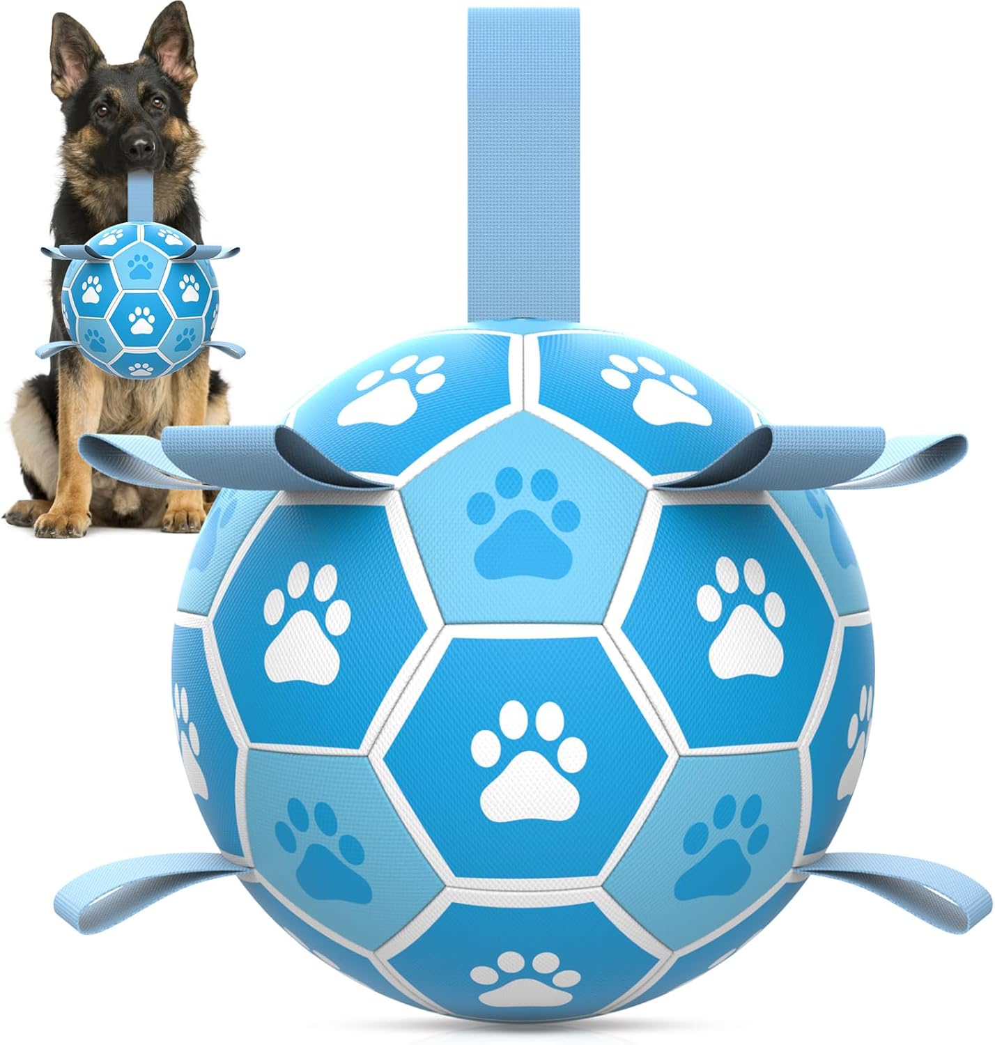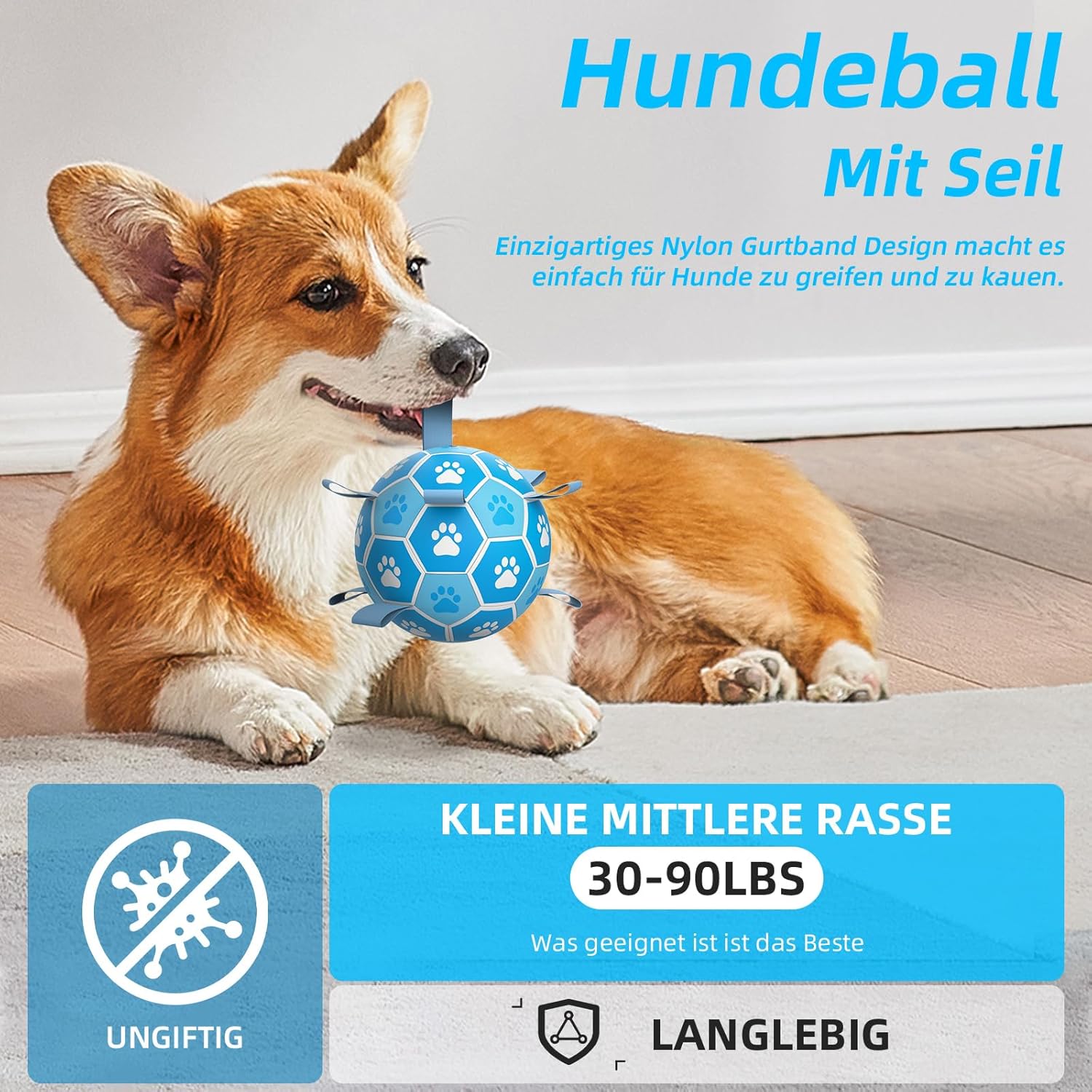 • Топка за кучета с презрамки: Найлоновата каишка на топката осигурява радост както за любителите на кучета, така и за техните космати приятели. Можете да играете игри на дърпане на въже, гонене или изследване и, разбира се, много други нови възможности за игра ви очакват да бъдат отключени от вас.