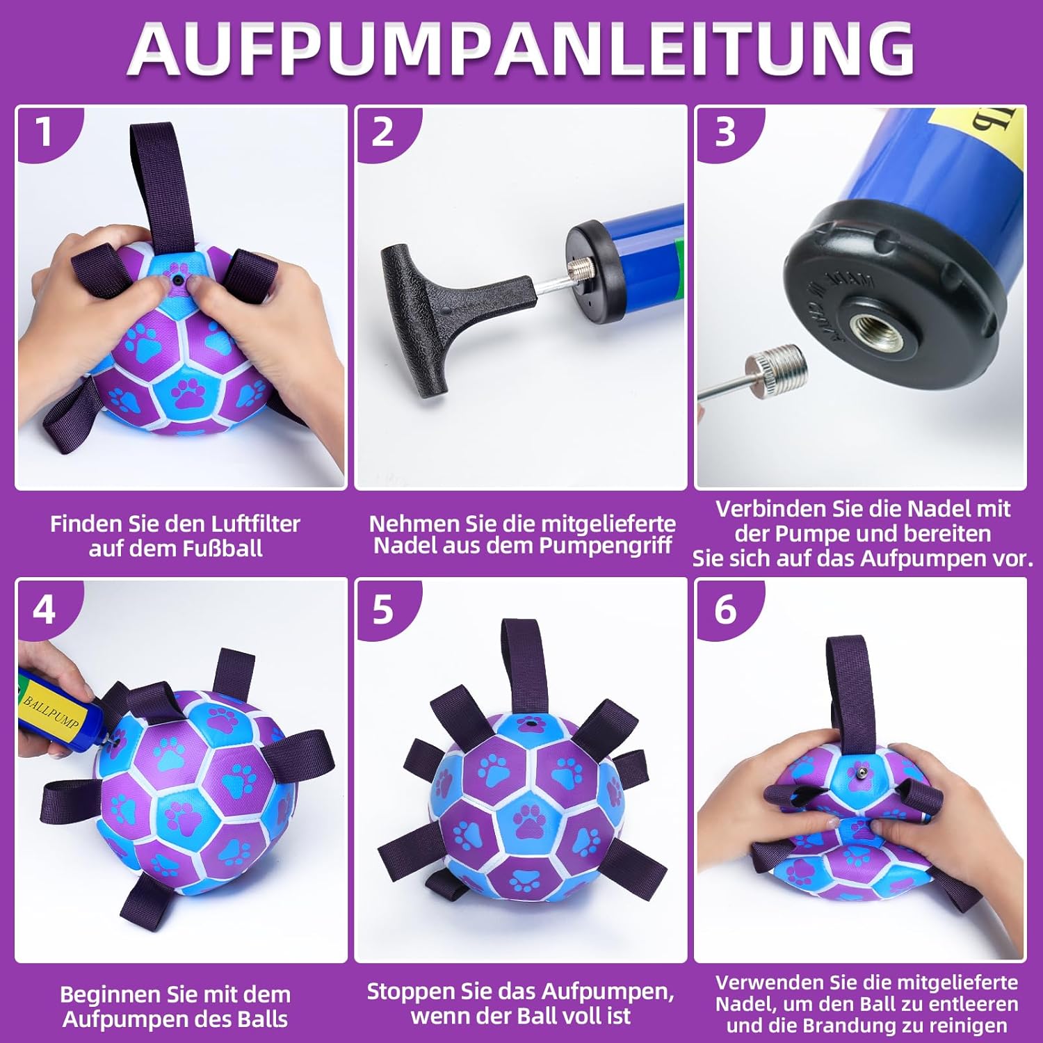 • - Пакетът, който получавате, включва адаптер за игла, помпа и спукана футболна топка за кучета. - Моля, обърнете внимание: Това е само интерактивна играчка за кучета, а не играчка за дъвчене.