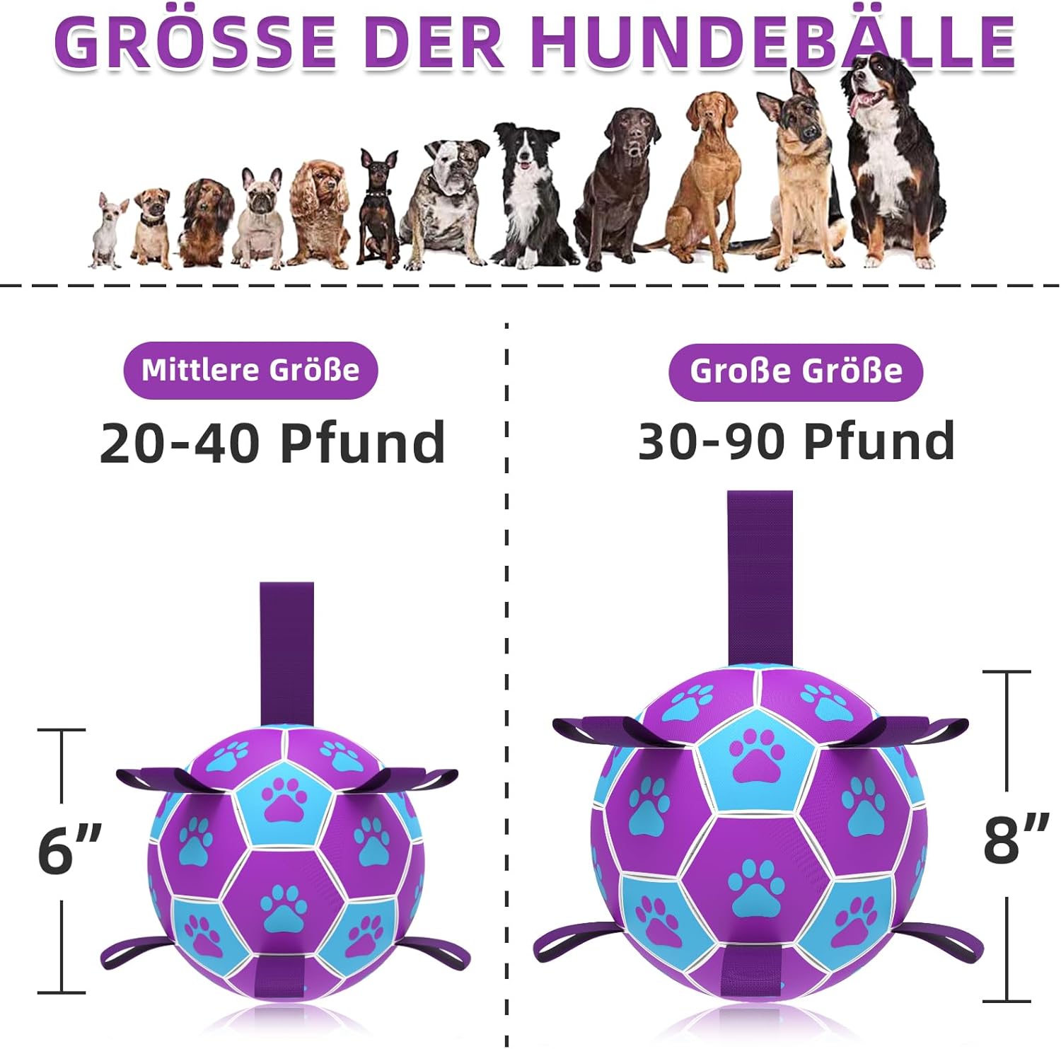• Топка за кучета с презрамки: Найлоновата каишка на топката осигурява радост както за любителите на кучета, така и за техните космати приятели. Можете да играете игри на дърпане на въже, гонене или изследване и, разбира се, много други нови възможности за игра ви очакват да бъдат отключени от вас.