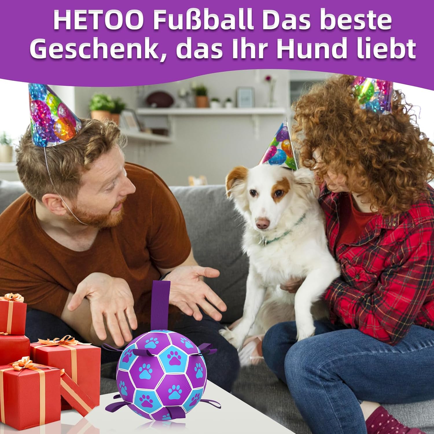 HETOO Топка за кучета, играчка топка за кучета с дръжка за кучета, интерактивно дърпане на въже, водни топки за кучета, играчка, подарък за рожден ден за средни/големи кучета (15,24 см, лилаво-синьо)