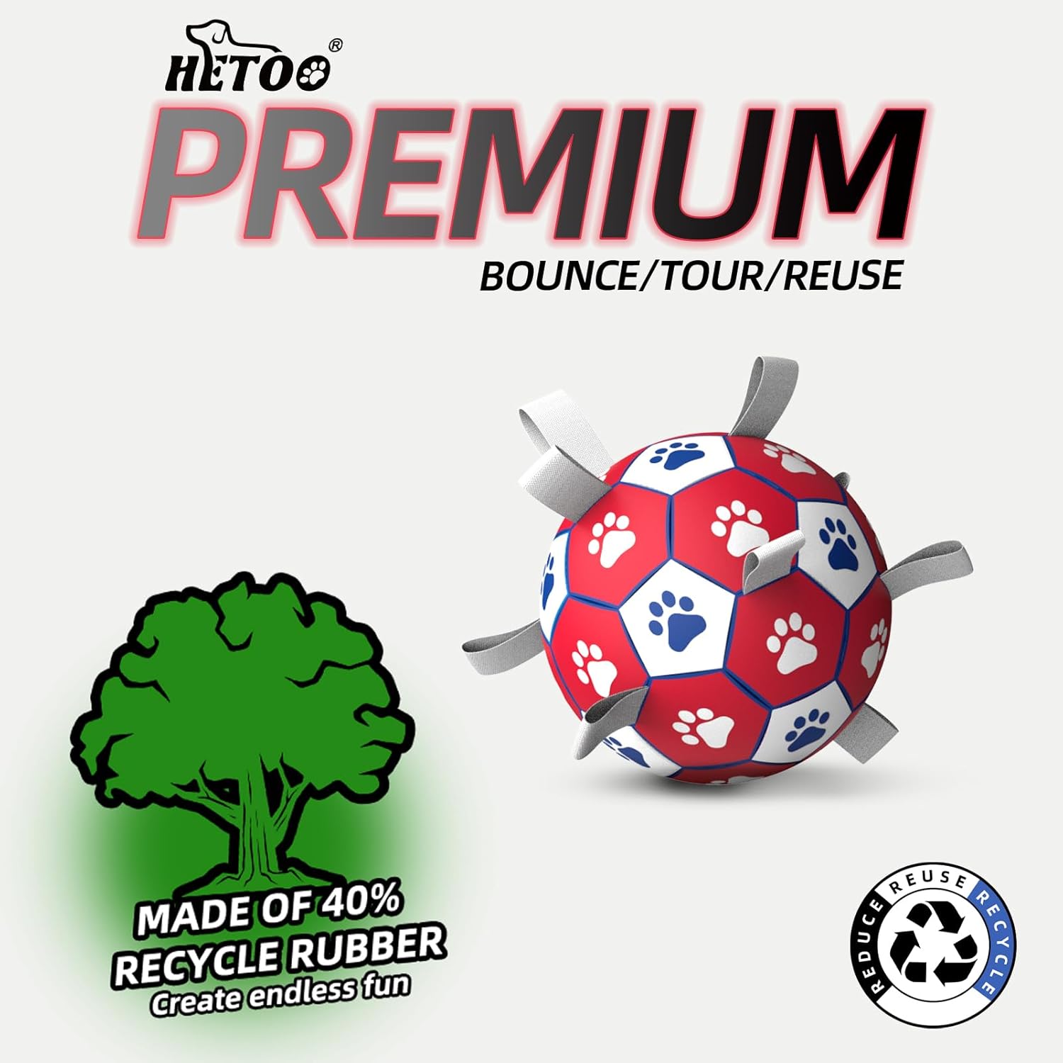 • Играчка за кучета HETOO: Уникалният дизайн на футболна топка с каишки отговаря на нуждите на кучетата при хапане, лов и обучение. В същото време, черно-бяло-зеленият дизайн, подходящ за зрението на кучето, ефективно привлича вниманието му.