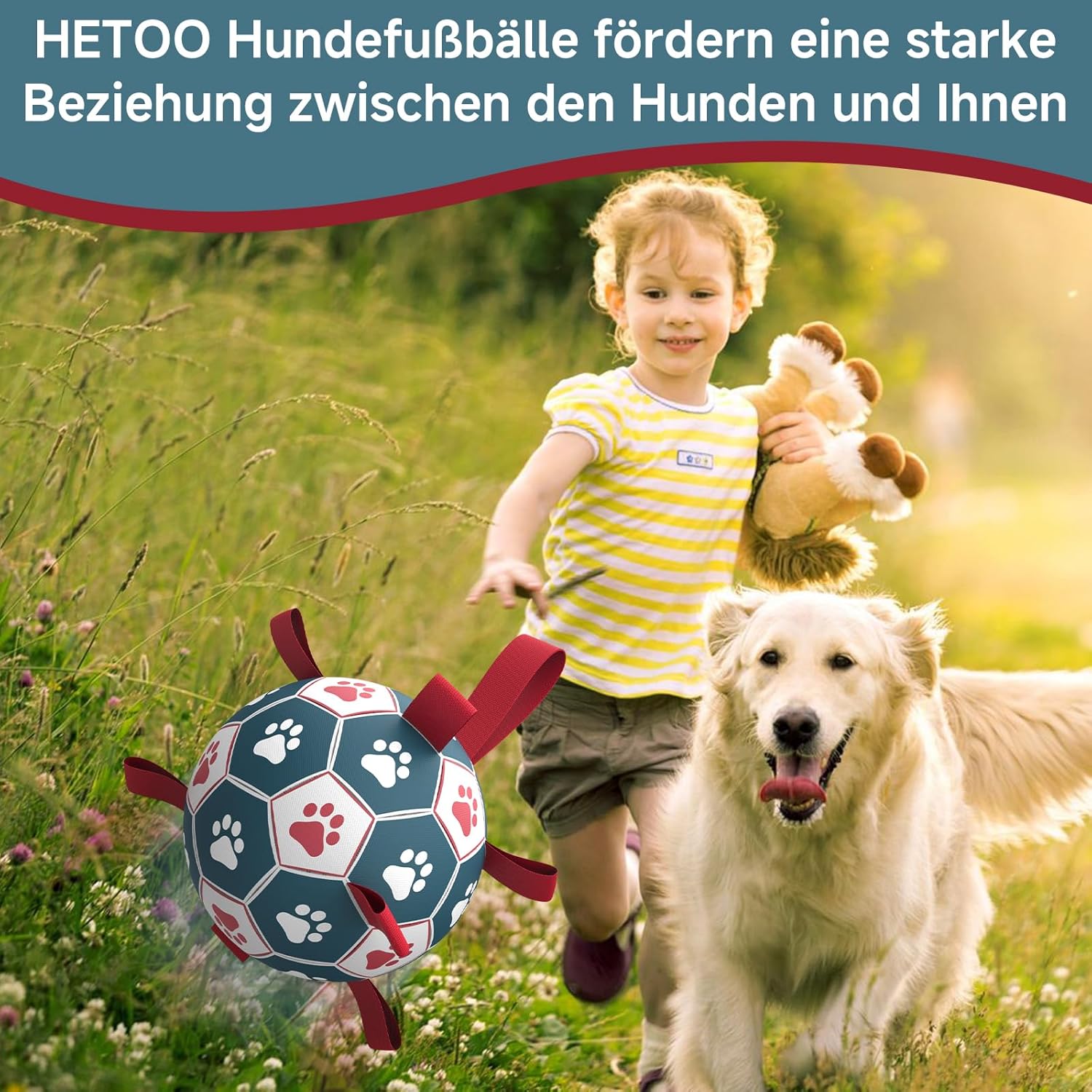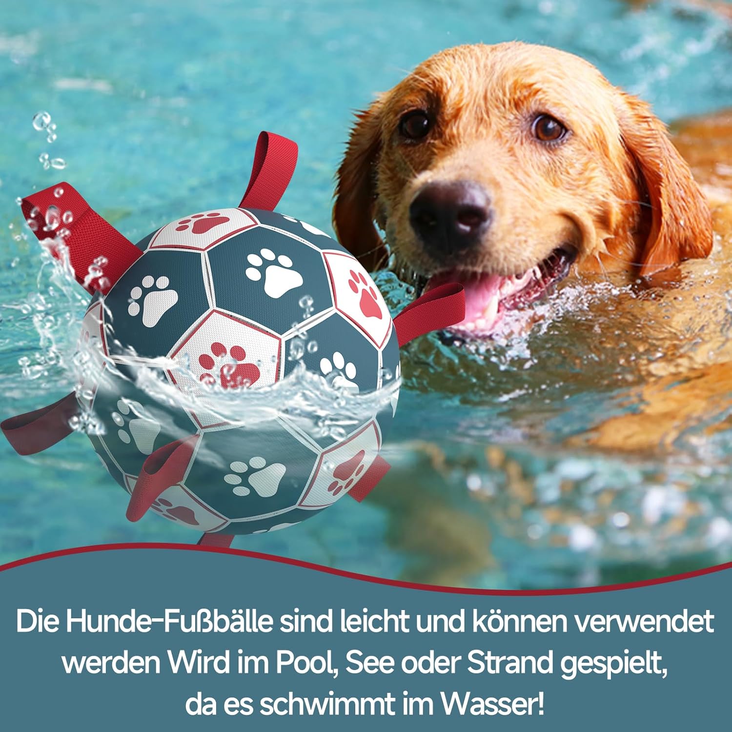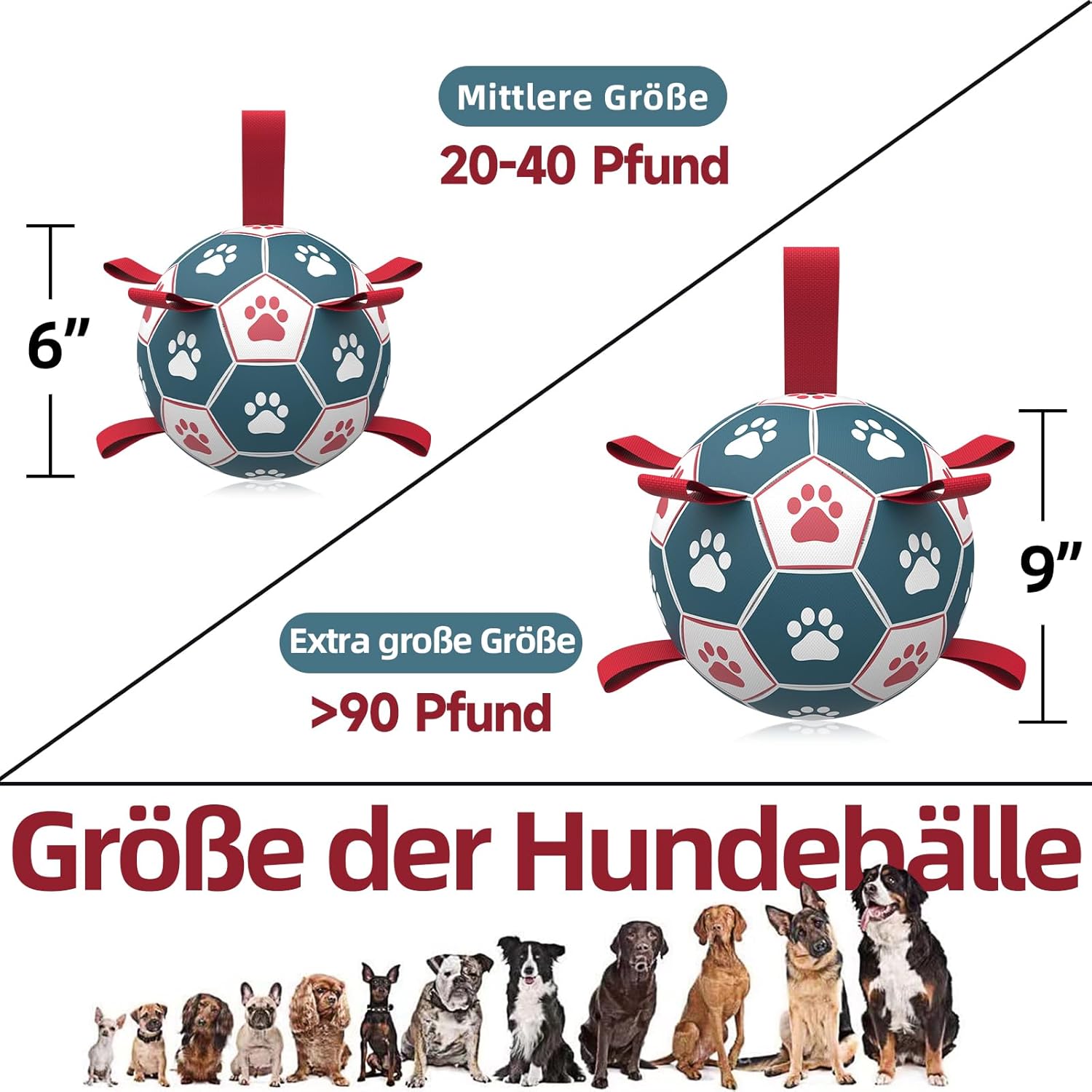 HETOO Топка за кучета, играчка топка за кучета с дръжка за кучета, интерактивно теглене на бой, водни топки за кучета, играчка, подарък за рожден ден за големи/изключително големи кучета (9 инча, червена, синя)