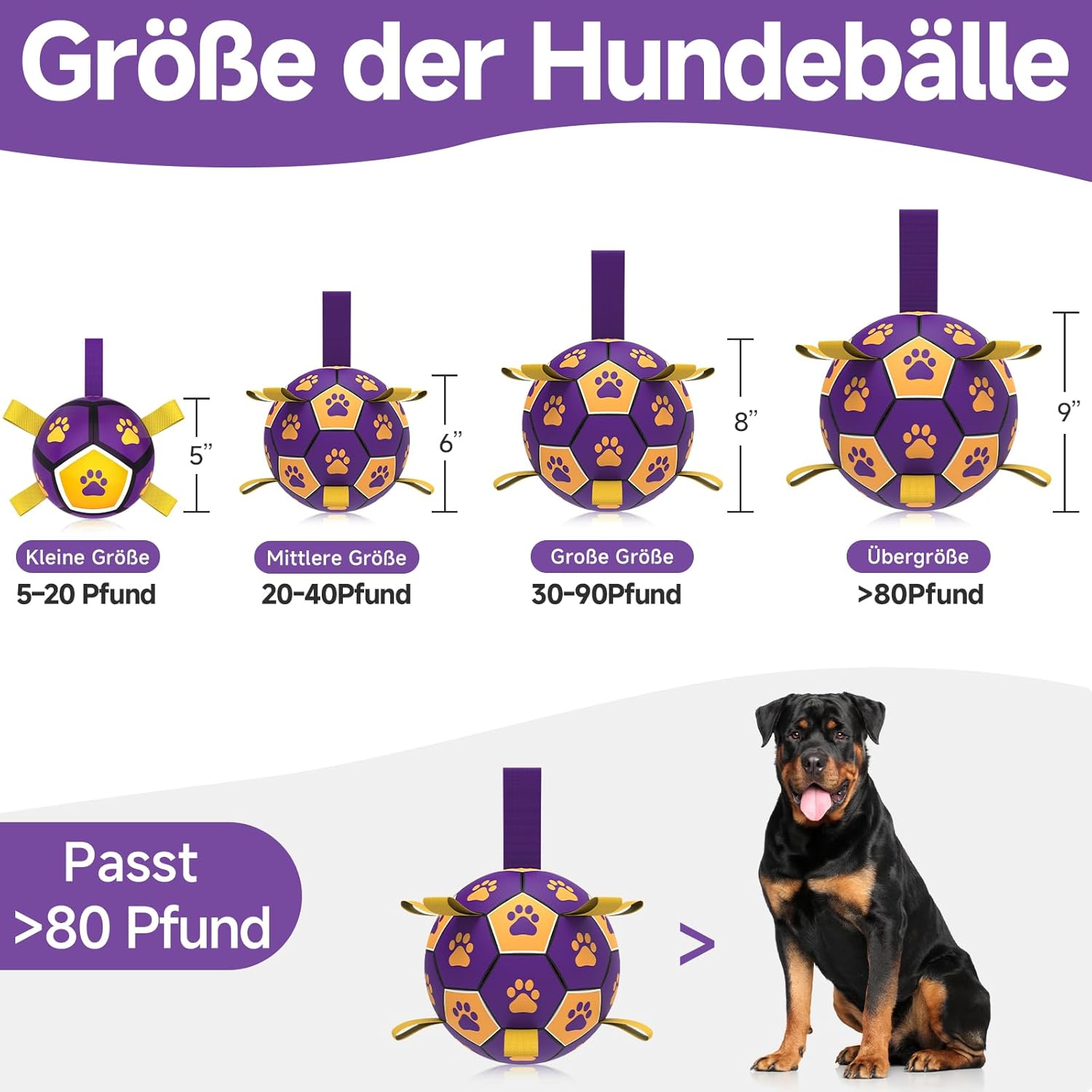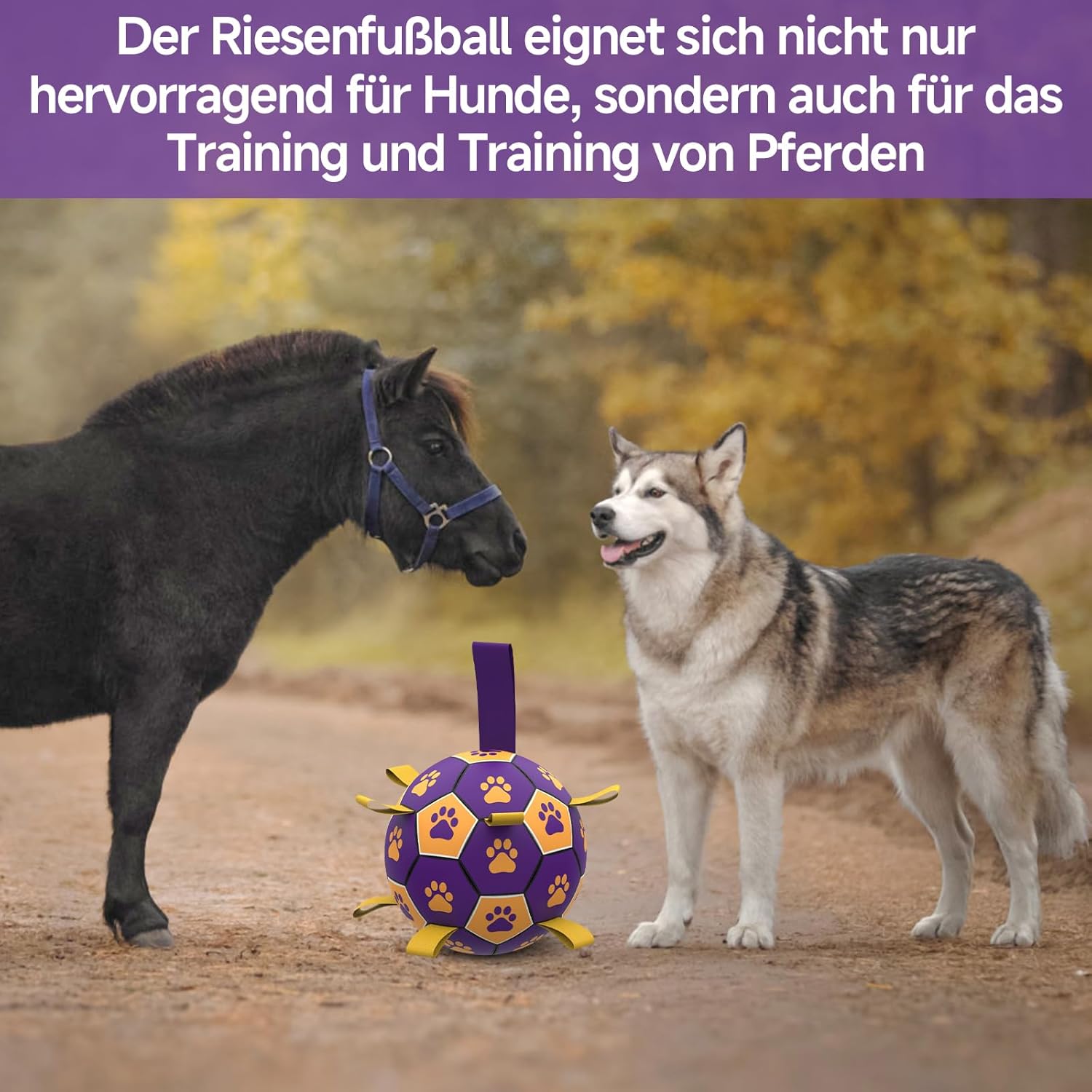 • Топка за кучета с презрамки: Найлоновата каишка на топката осигурява радост както за любителите на кучета, така и за техните космати приятели. Можете да играете игри на дърпане на въже, гонене или изследване и, разбира се, много други нови възможности за игра ви очакват да бъдат отключени от вас.