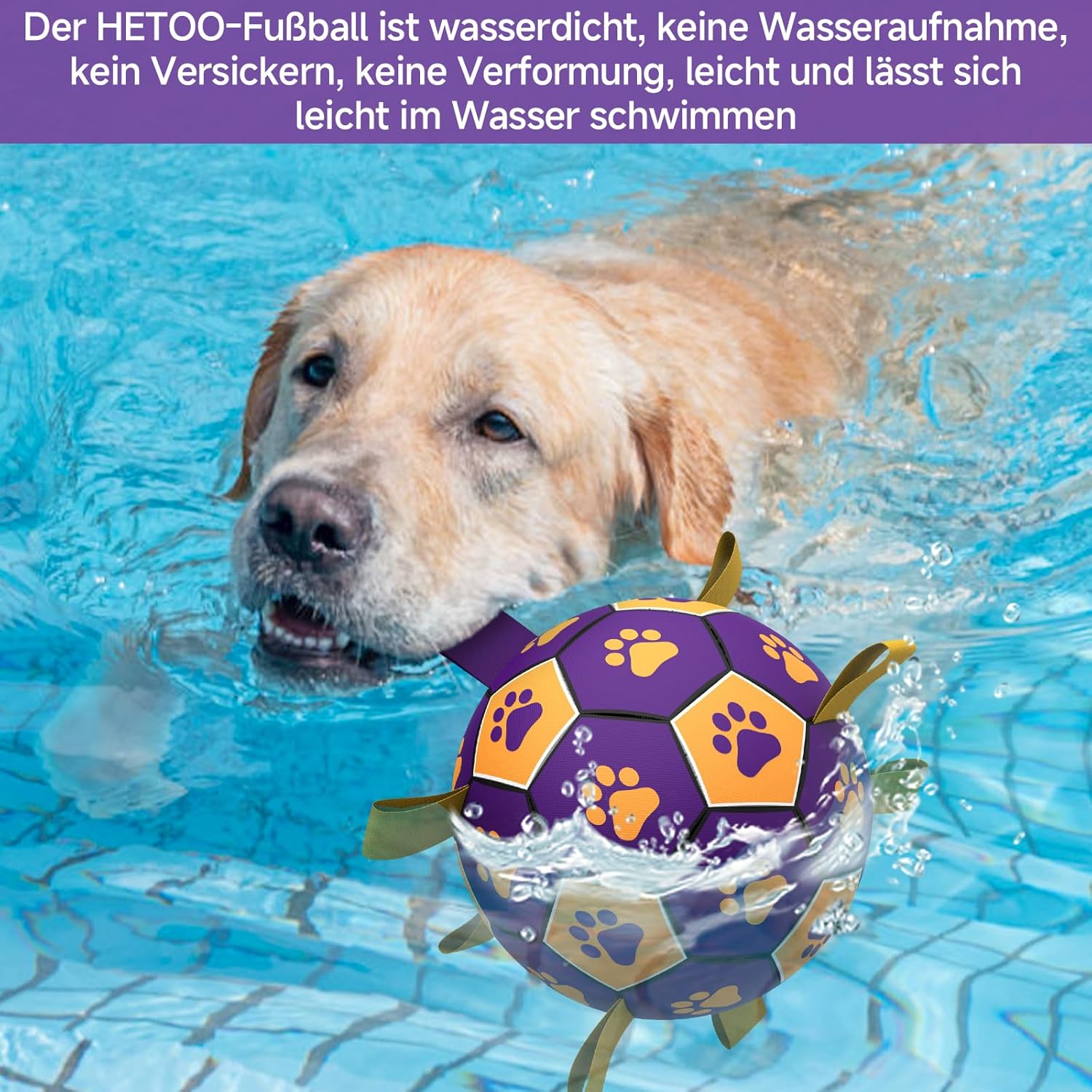 HETOO Топка за кучета, играчка топка за кучета с дръжка за кучета, интерактивно теглене на бойни предмети, водни топки за кучета, играчка, подарък за рожден ден за средни/големи кучета (9 инча, лилава, жълта)