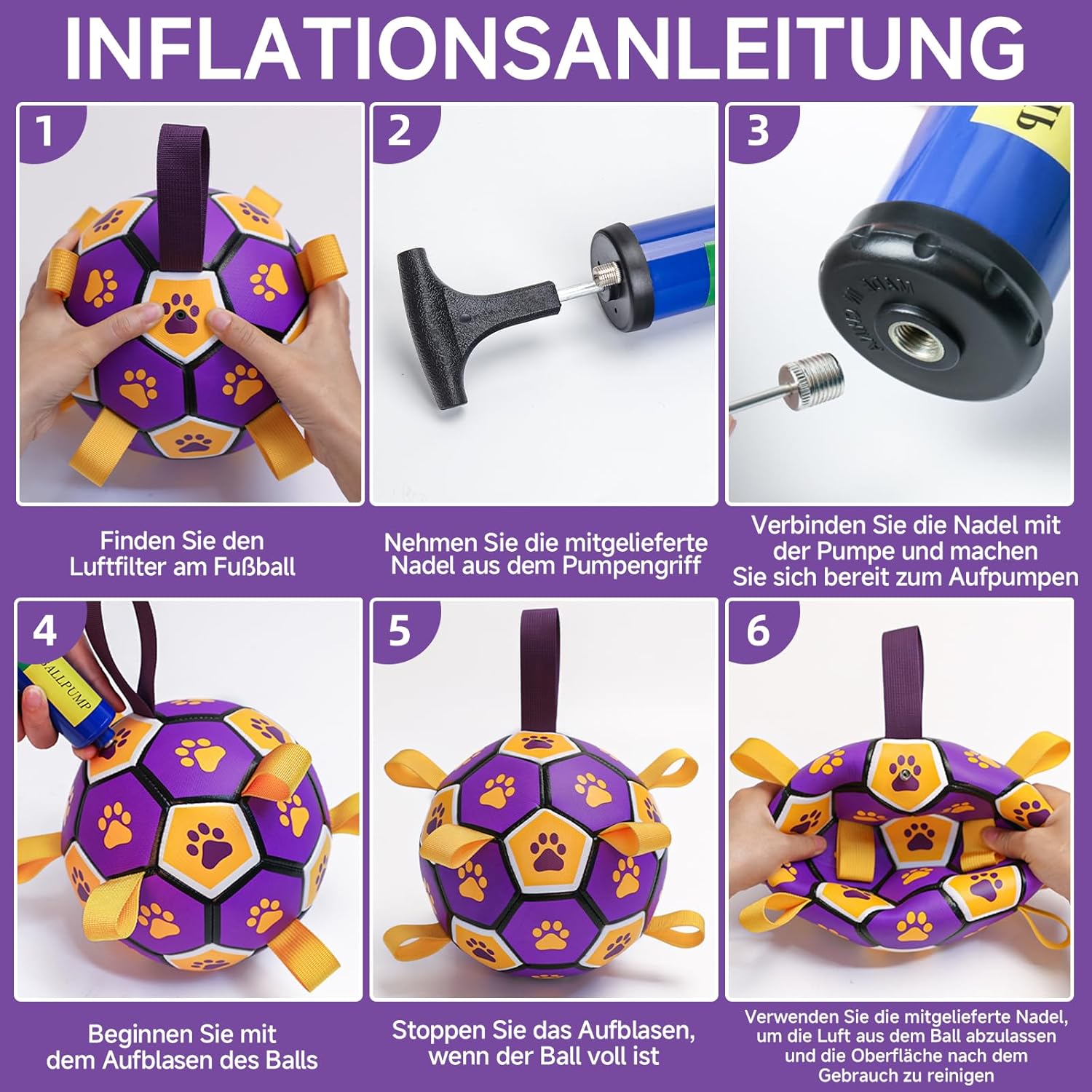 • - Пакетът, който получавате, включва адаптер за игла, помпа и спукана футболна топка за кучета. - Моля, обърнете внимание: Това е само интерактивна играчка за кучета, а не играчка за дъвчене.