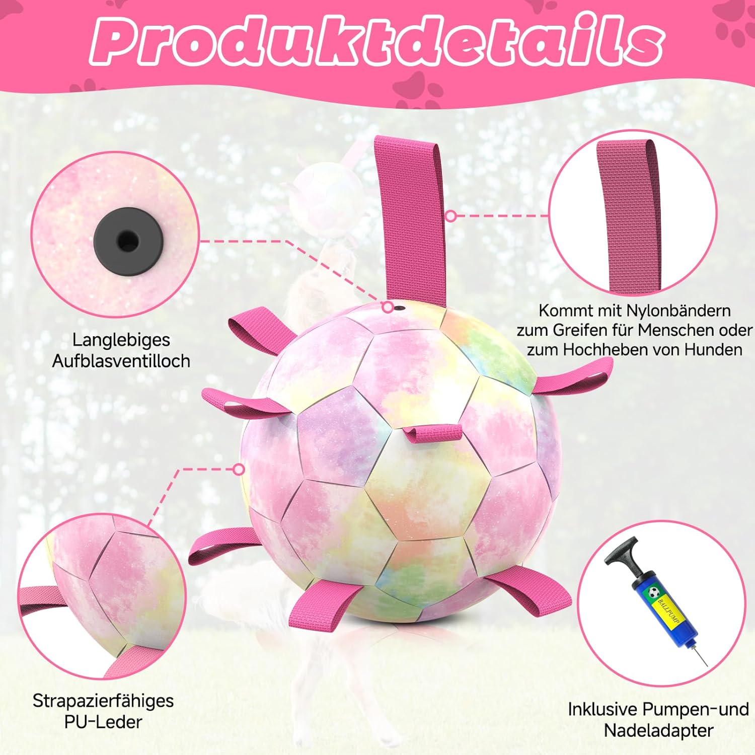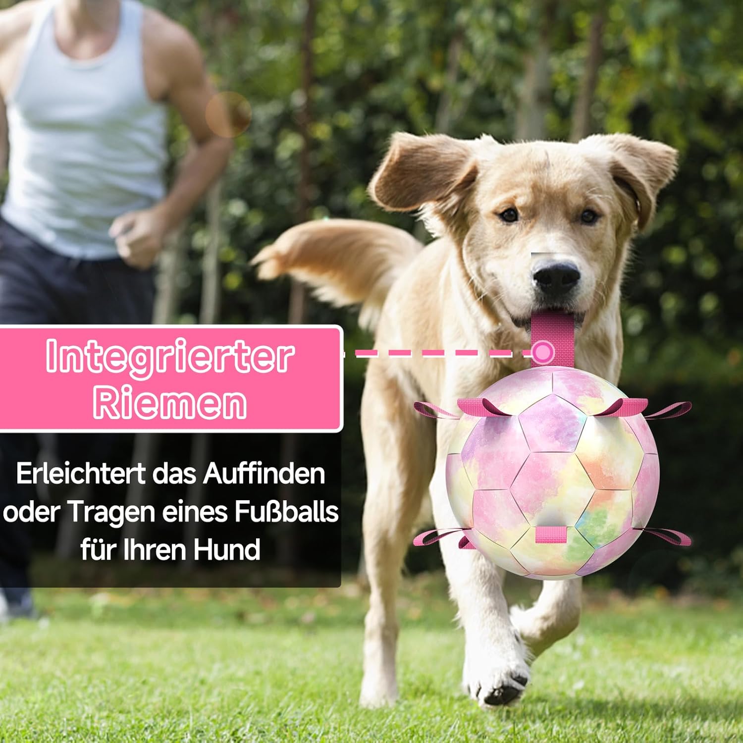 • Топка за кучета с презрамки: Найлоновата каишка на топката осигурява радост както за любителите на кучета, така и за техните космати приятели. Можете да играете игри на дърпане на въже, гонене или изследване и, разбира се, много други нови възможности за игра ви очакват да бъдат отключени от вас.