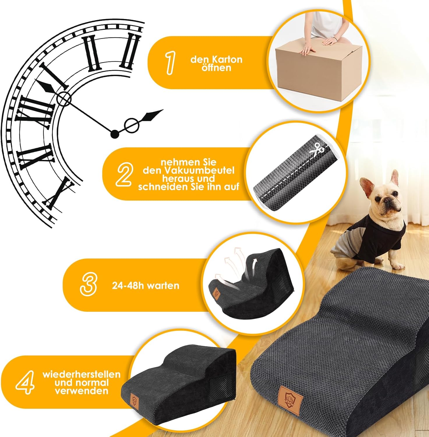 • Лесен монтаж: Стълбата не изисква сглобяване и е лесна за употреба. Тъй като стълбата е вакуумно опакована, моля, изчакайте 24-48 часа след отваряне на опаковката, за да се разгъне напълно, и след това поставете калъфа. Нашата лесна за употреба стълба за катерене е най-добрият подарък за вашия домашен любимец. Тази стълба е подходяща за домашни любимци с тегло до 22,7 кг (50 фунта).