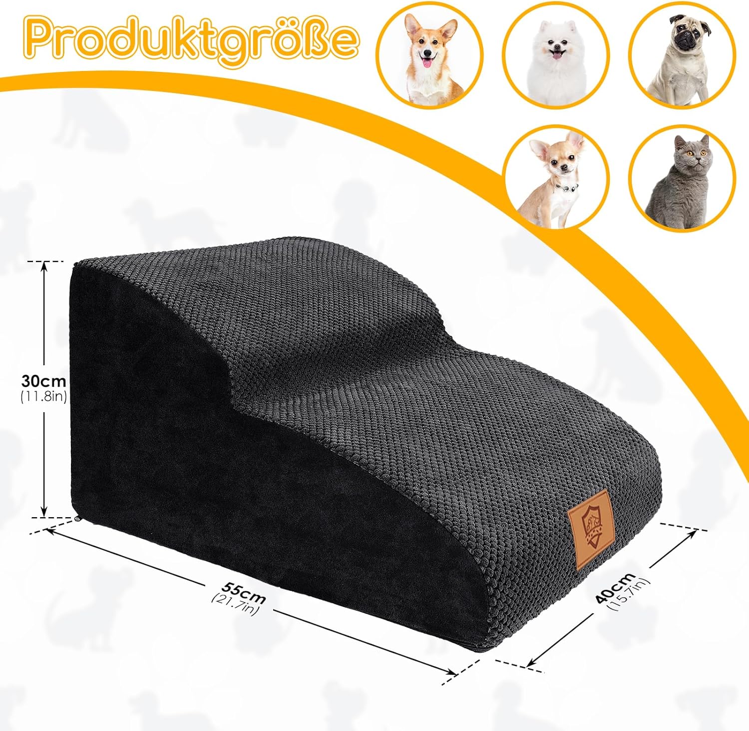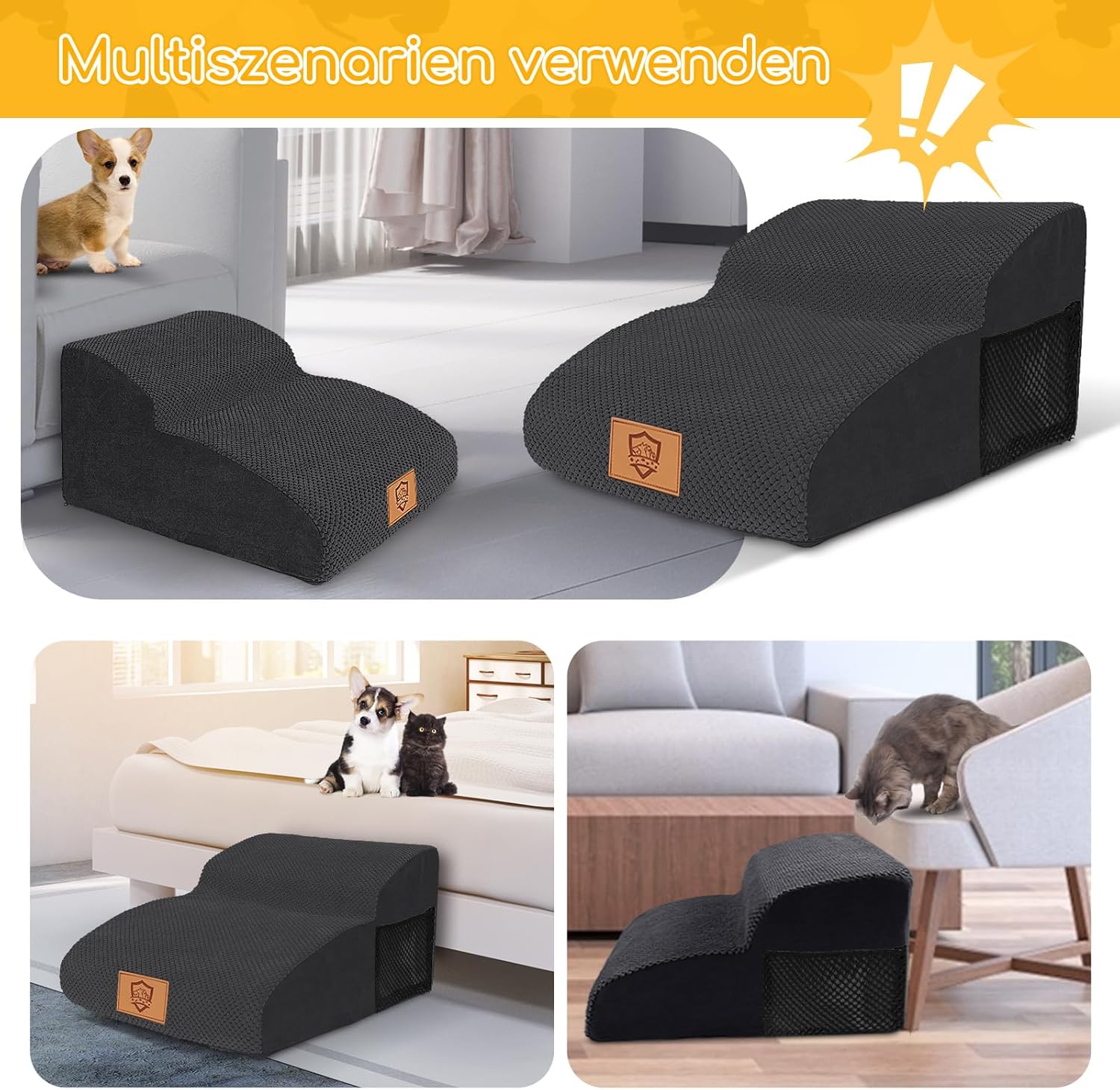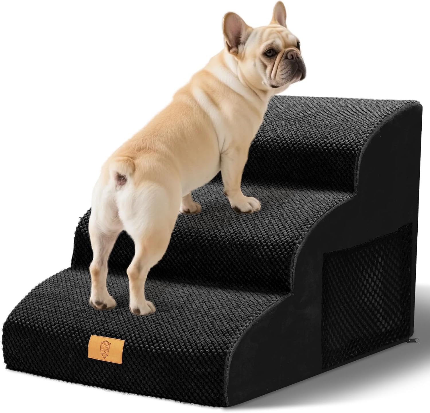 • Висококачествена стълба за катерене: Стълбата за катерене е изработена от 30D пяна с висока плътност, която е силно еластична, осигурява здрава опора, не се деформира лесно и е по-издръжлива. Повърхността на стъпалото е проектирана с лек наклон, за да се намали натиска върху ставите на вашия домашен любимец при катерене нагоре и надолу по стълбите, така че е подходяща за домашни любимци с ограничена подвижност, млади домашни любимци или малки домашни любимци с къси крака.