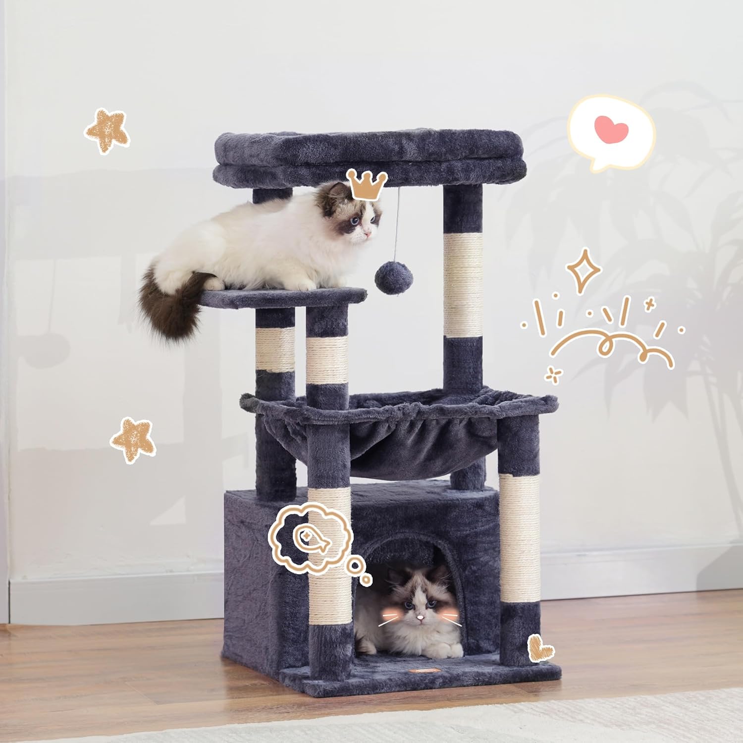 Heybly HCT008SG Драскалка за котки с изключително голяма мека кошница за котки, Драскалка за котки с просторно котешко легло и скрита зона за спане, Здрави сизалови драскалки, Опушено сиво