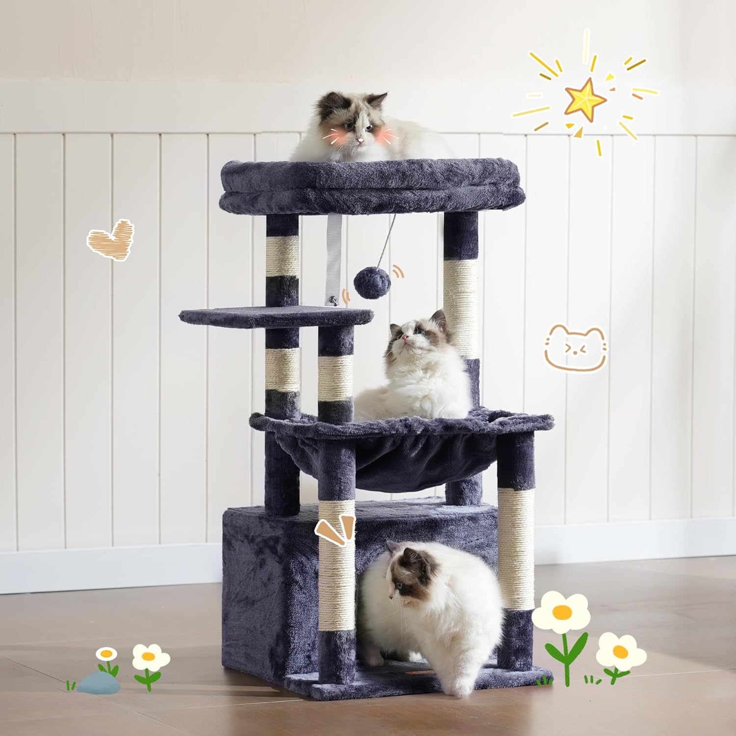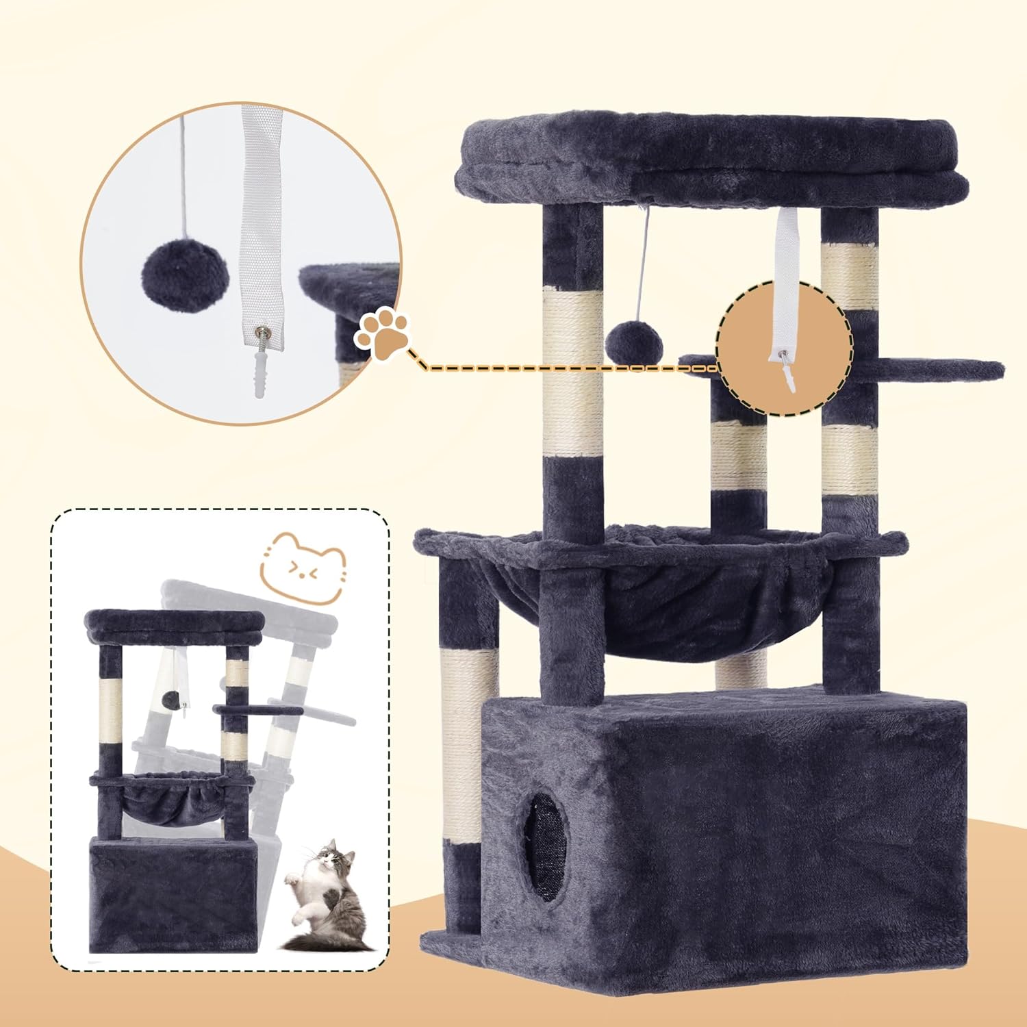 • Изискана структура на продукта: майсторски изработено с обмислен дизайн, това дърво за катерене има гениална многостепенна концепция. Здравата основа позволява на котките лесен достъп до първата платформа.