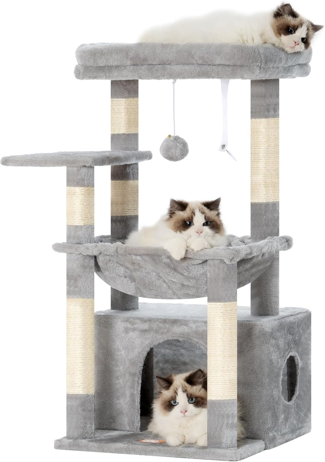 • Множество стълбчета за драскане: Нашите мебели за котки съдържат 8 внимателно проектирани стълбчета за драскане. Изработени от висококачествено ПДЧ, те са здрави, но еластични - идеални за заточване на нокти и защита на ноктите.