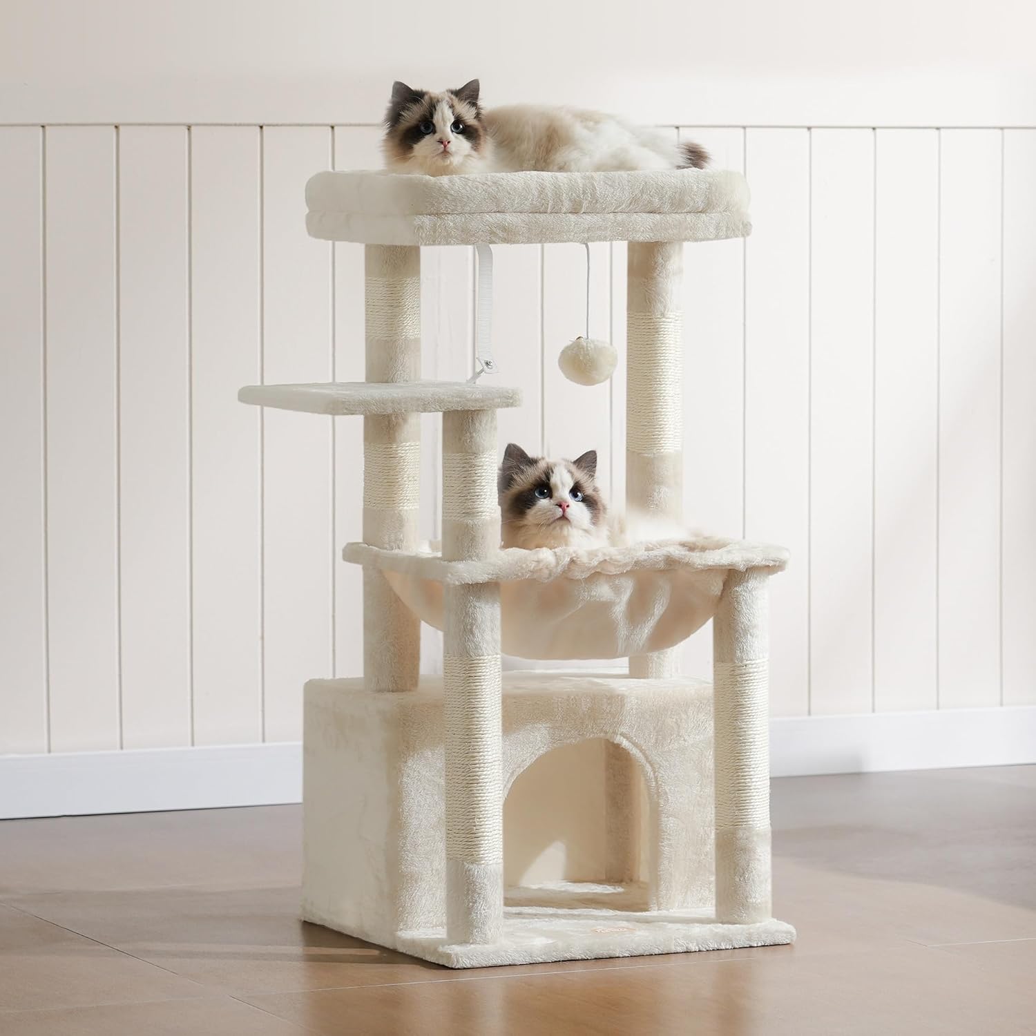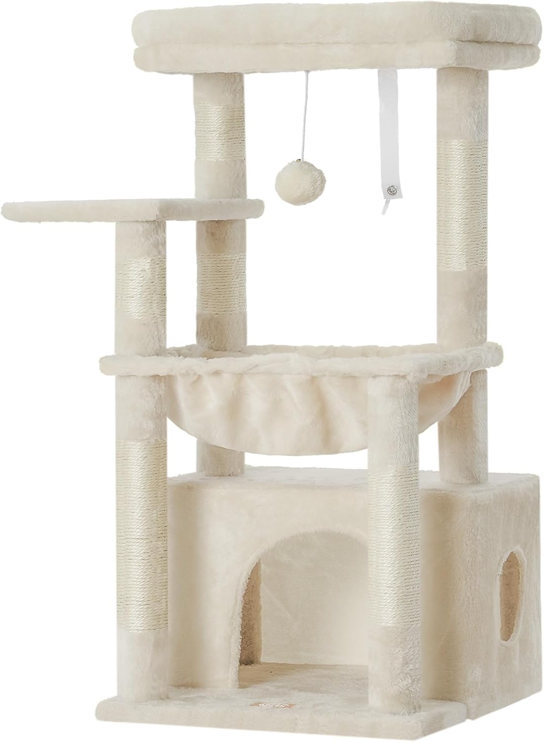Heybly HCT008SM Драскалка за котки с изключително голяма мека кошница за котки, Драскалка за котки с просторно котешко легло и скрита зона за спане, Здрави сизалови драскалки, Бежова