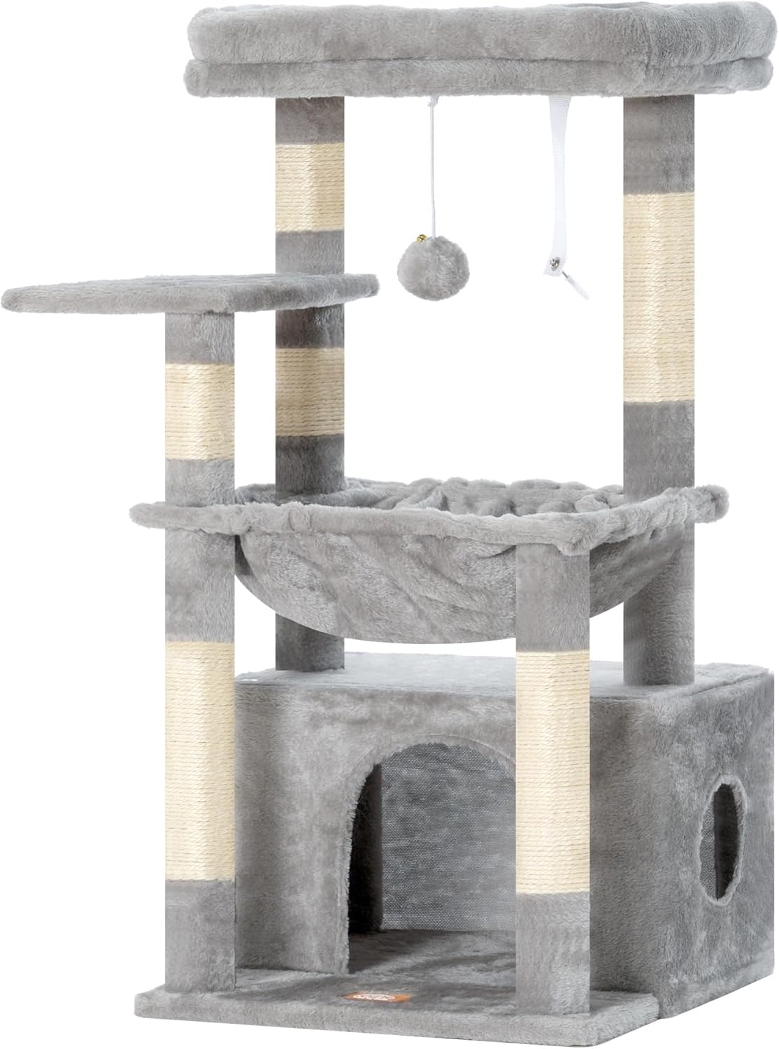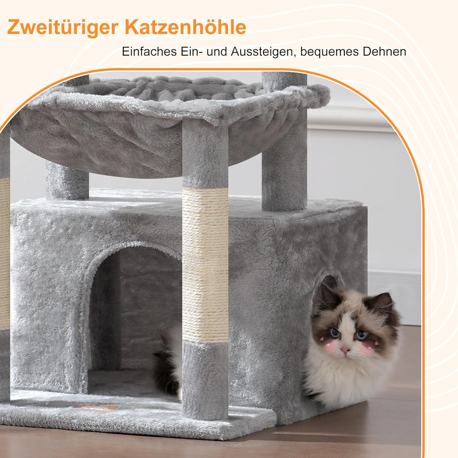 Heybly HCT008SW Драскалка за котки с изключително голяма мека кошница за котки, Драскалка за котки с просторно котешко легло и скрита зона за спане, Здрави сизалови драскалки, Светло сиво
