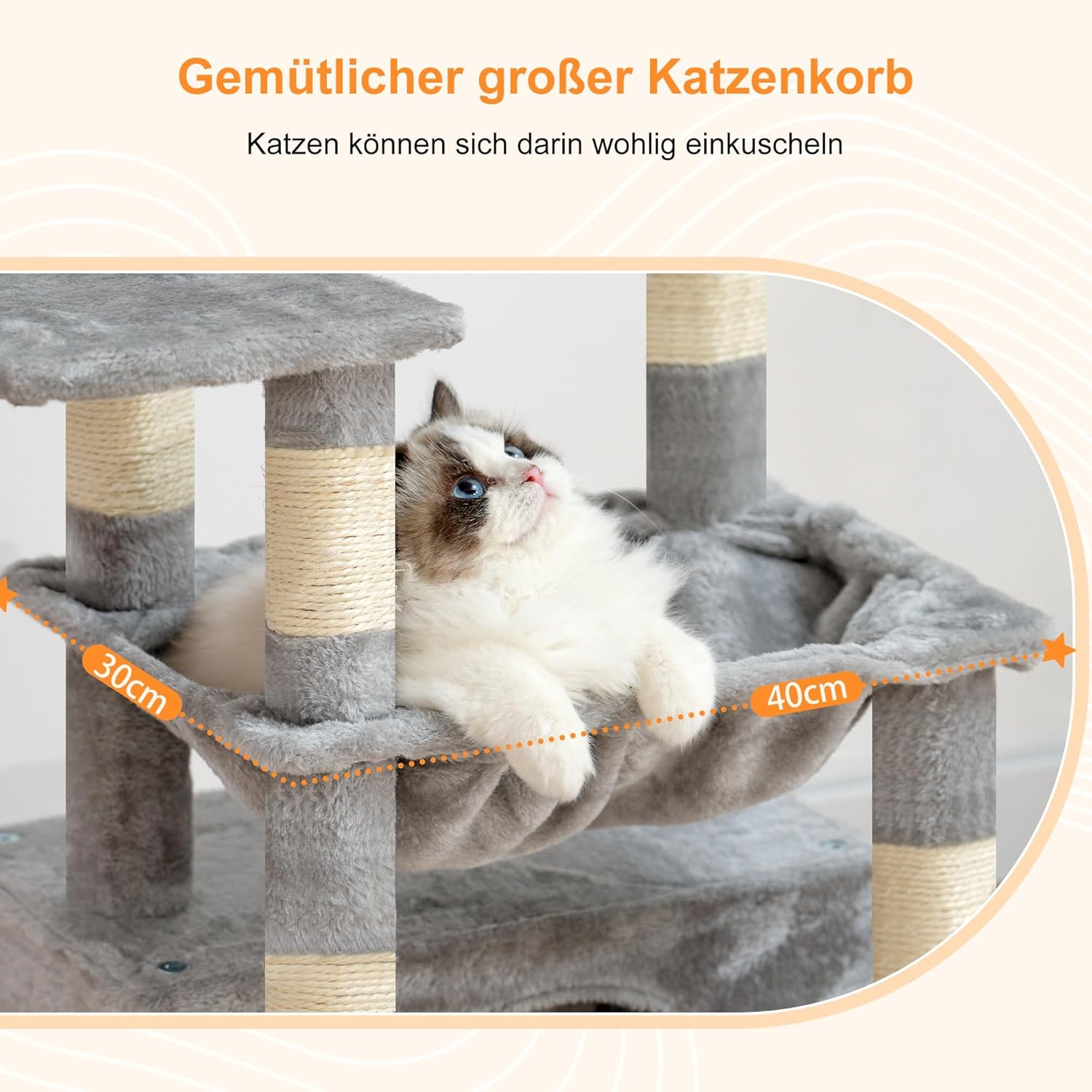• Голяма и удобна кошница за котки: това дърво за катерене има изключително голяма кошница за котки. Размерите са перфектно проектирани за дълги разстояния. Вътрешната подплата е изработена от висококачествен мек материал с копринено гладка повърхност, която нежно защитава козината на вашата котка.