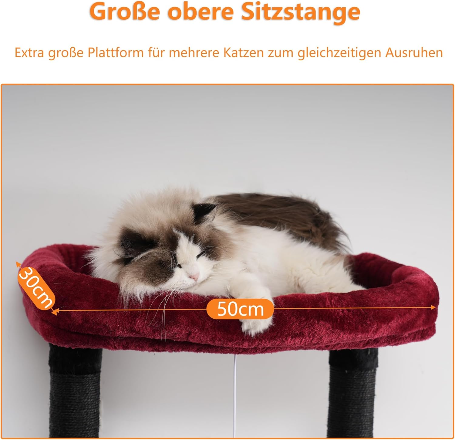 • 2 просторни кацалки: тази плюшена драскалка предлага две кацалки с мека подплата, както и платформи за наблюдение с размери 50 см x 30 см и 40 см x 25 см. Тук котките могат да се отпуснат и да се насладят на околната среда или просто да си починат на спокойствие.