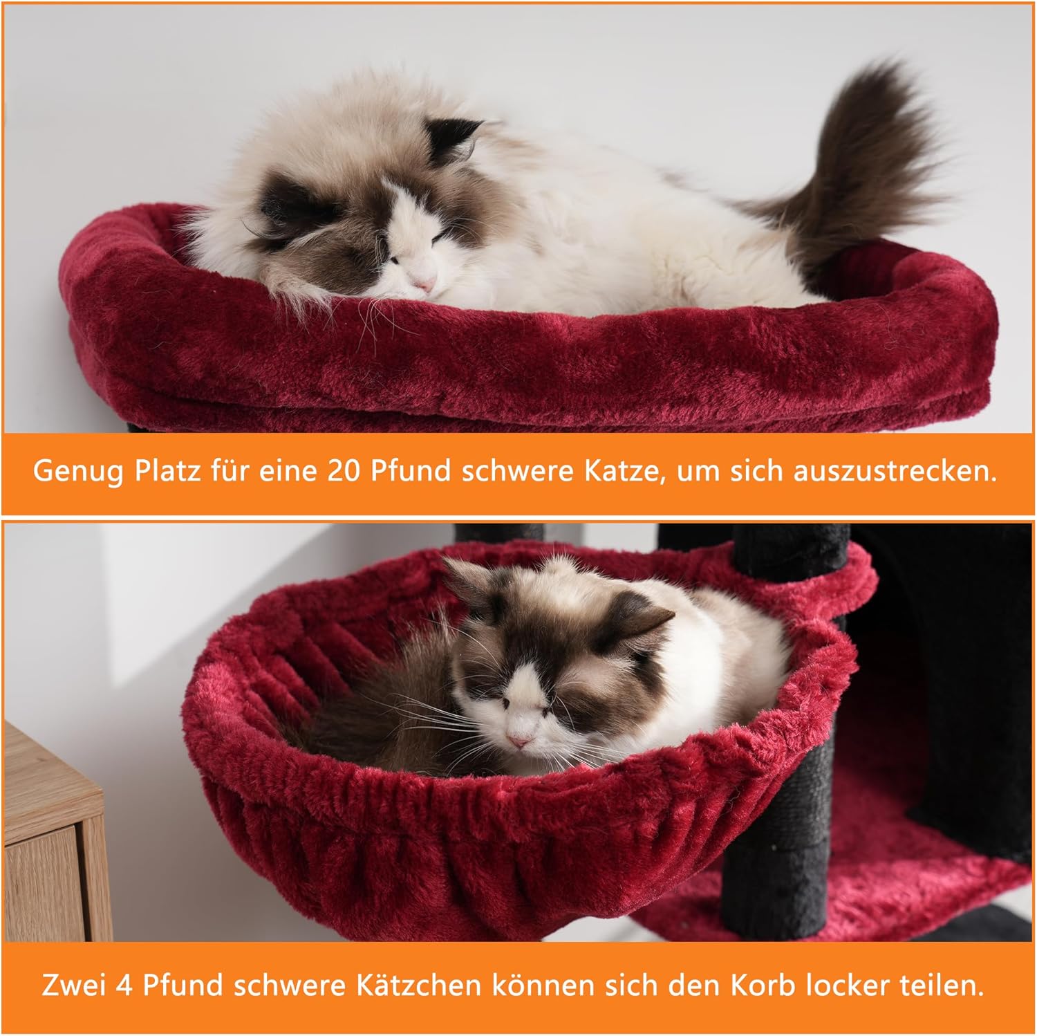 • Многофункционален дизайн, височина 200 см: стъпаловидна структура на тази драскалка осигурява на вашата котка достатъчно пространство за драскане, катерене, спане и игра. Големи пещери, хамаци и кошници позволяват лично убежище. С това разнообразие никоя котка няма да остане безработна.