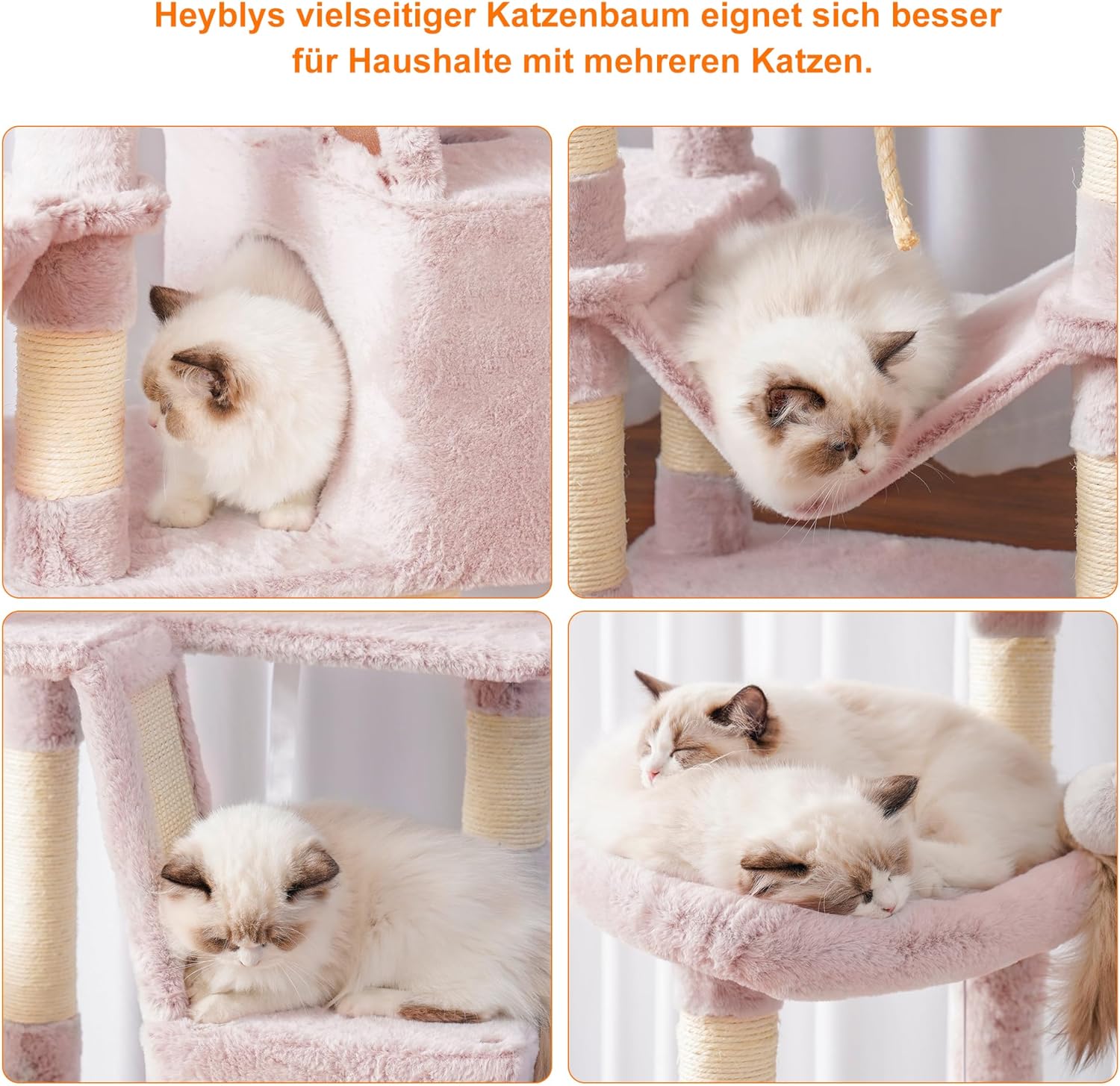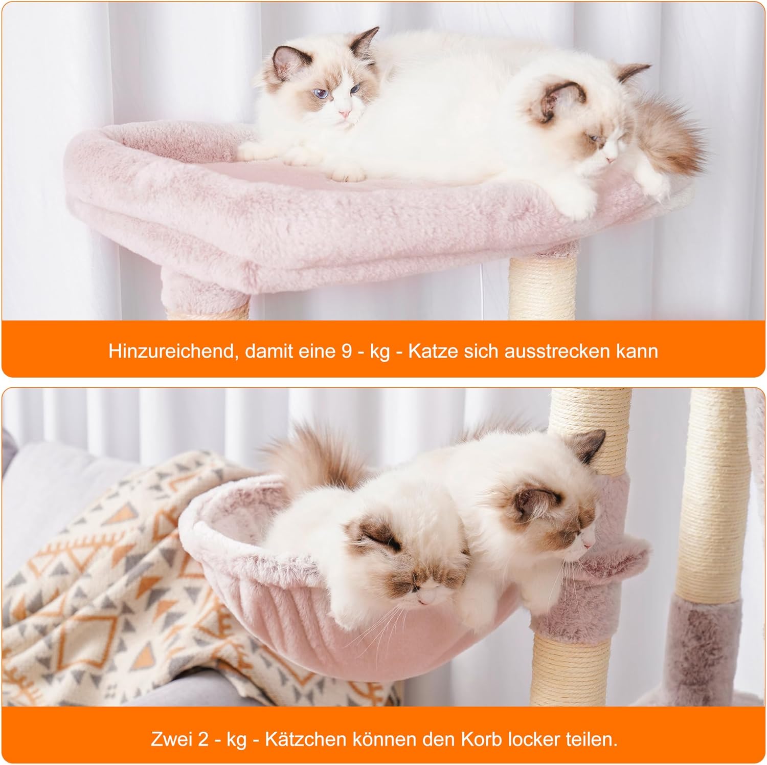 • Многофункционален дизайн, височина 200 см: стъпаловидна структура на тази драскалка осигурява на вашата котка достатъчно пространство за драскане, катерене, спане и игра. Големи пещери, хамаци и кошници позволяват лично убежище. С това разнообразие никоя котка няма да остане безработна.