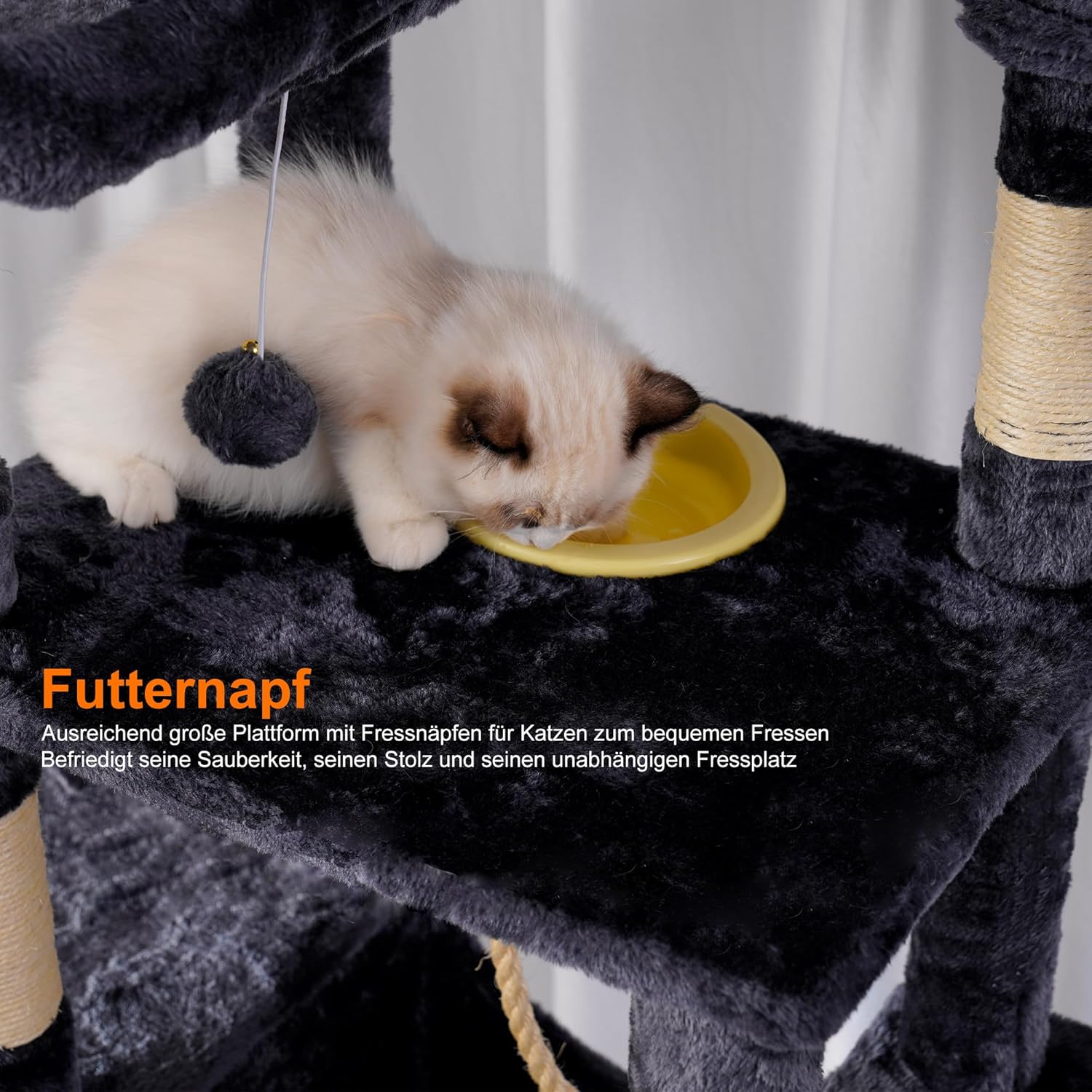 • Многофункционален дизайн, височина 200 см: стъпаловидна структура на тази драскалка осигурява на вашата котка достатъчно пространство за драскане, катерене, спане и игра. Големи пещери, хамаци и кошници позволяват лично убежище. С това разнообразие никоя котка няма да остане безработна.