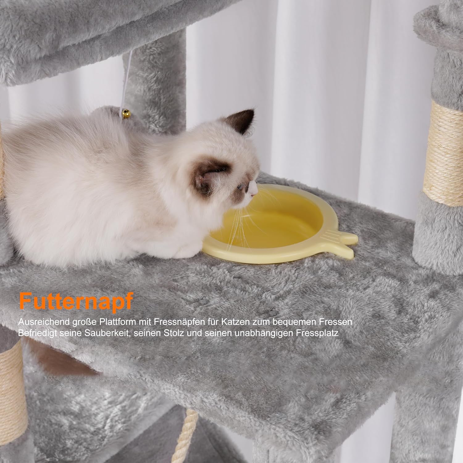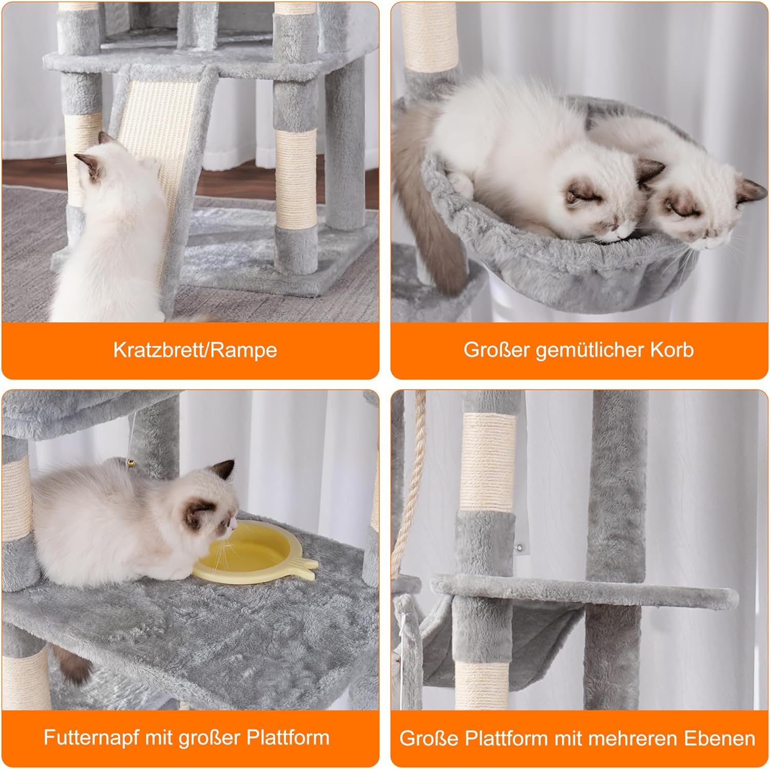 • Многофункционален дизайн, височина 200 см: стъпаловидна структура на тази драскалка осигурява на вашата котка достатъчно пространство за драскане, катерене, спане и игра. Големи пещери, хамаци и кошници позволяват лично убежище. С това разнообразие никоя котка няма да остане безработна.