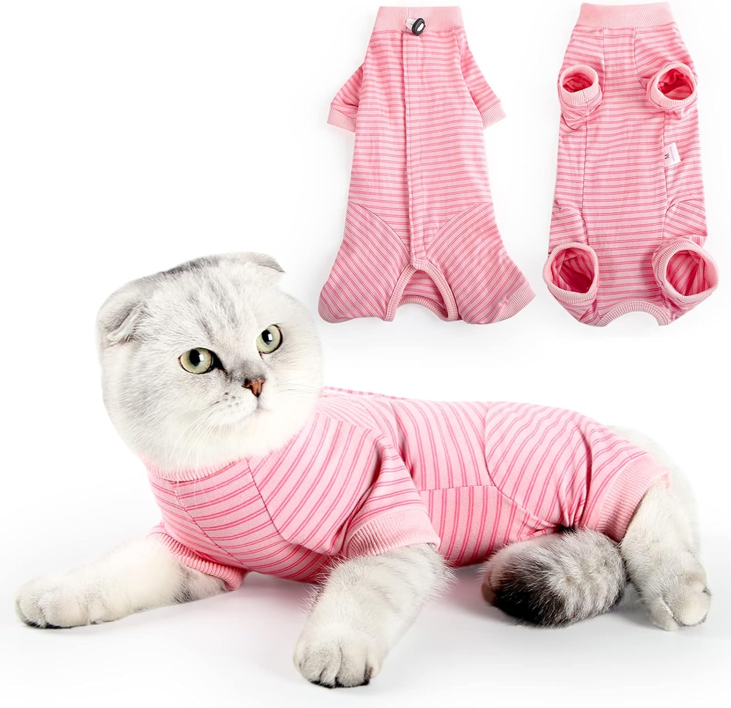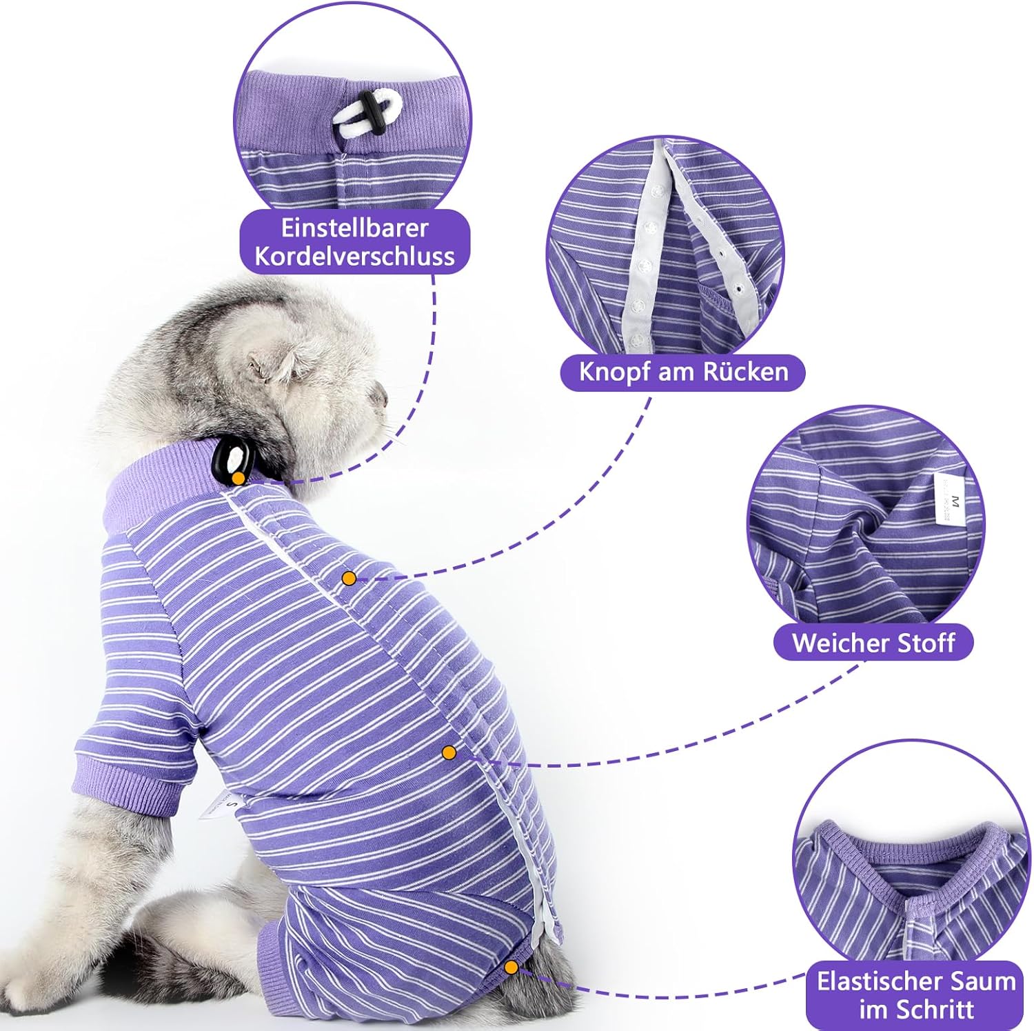 HEYWEAN Котешки боди за след операция Кастрационен котешки боди с райета и дълъг ръкав Котешки дрехи Алтернативи на яка Котешки боди за котки Операция Против протичане След операция Облекло