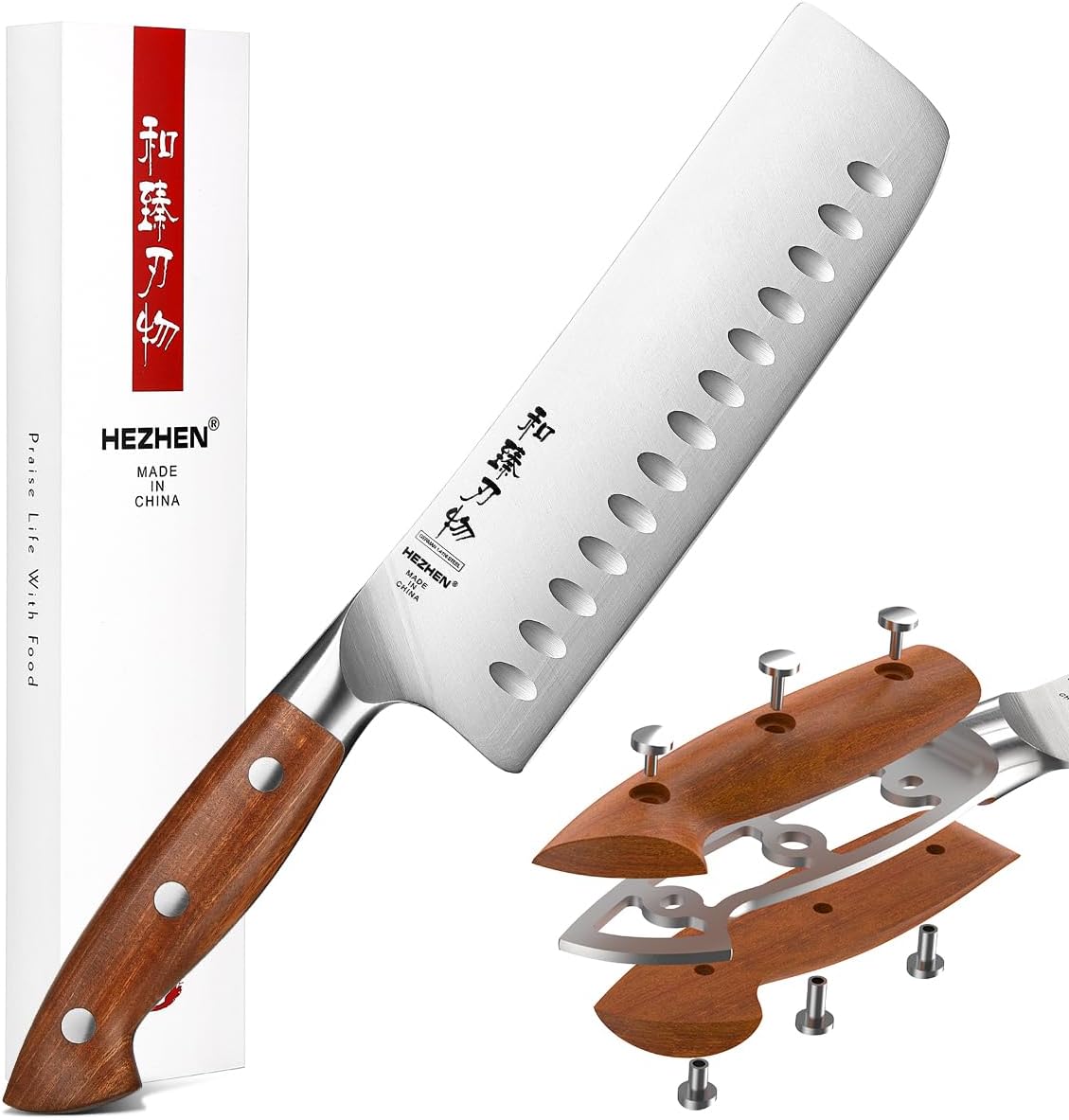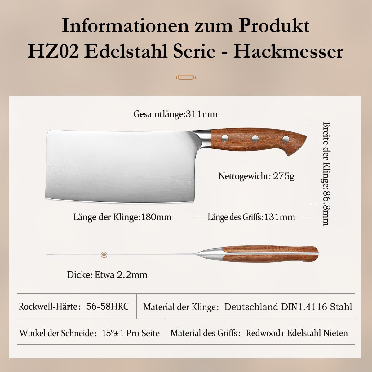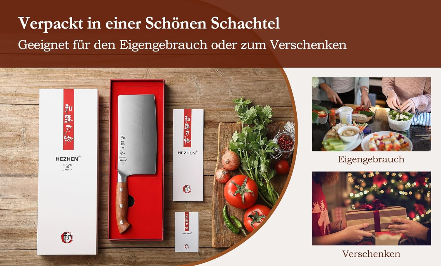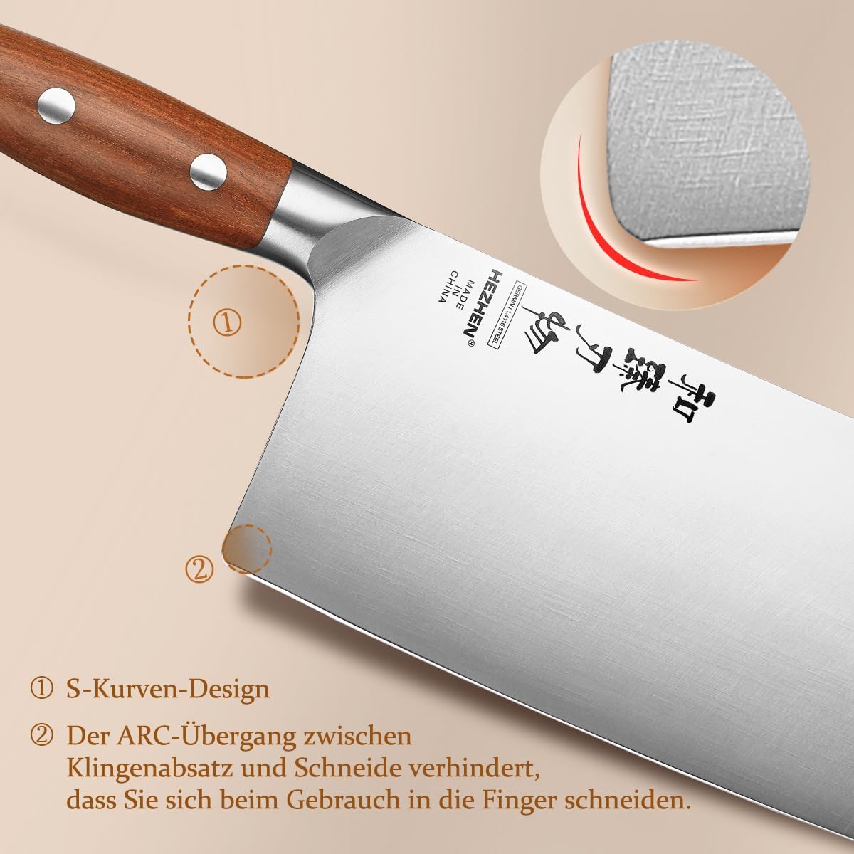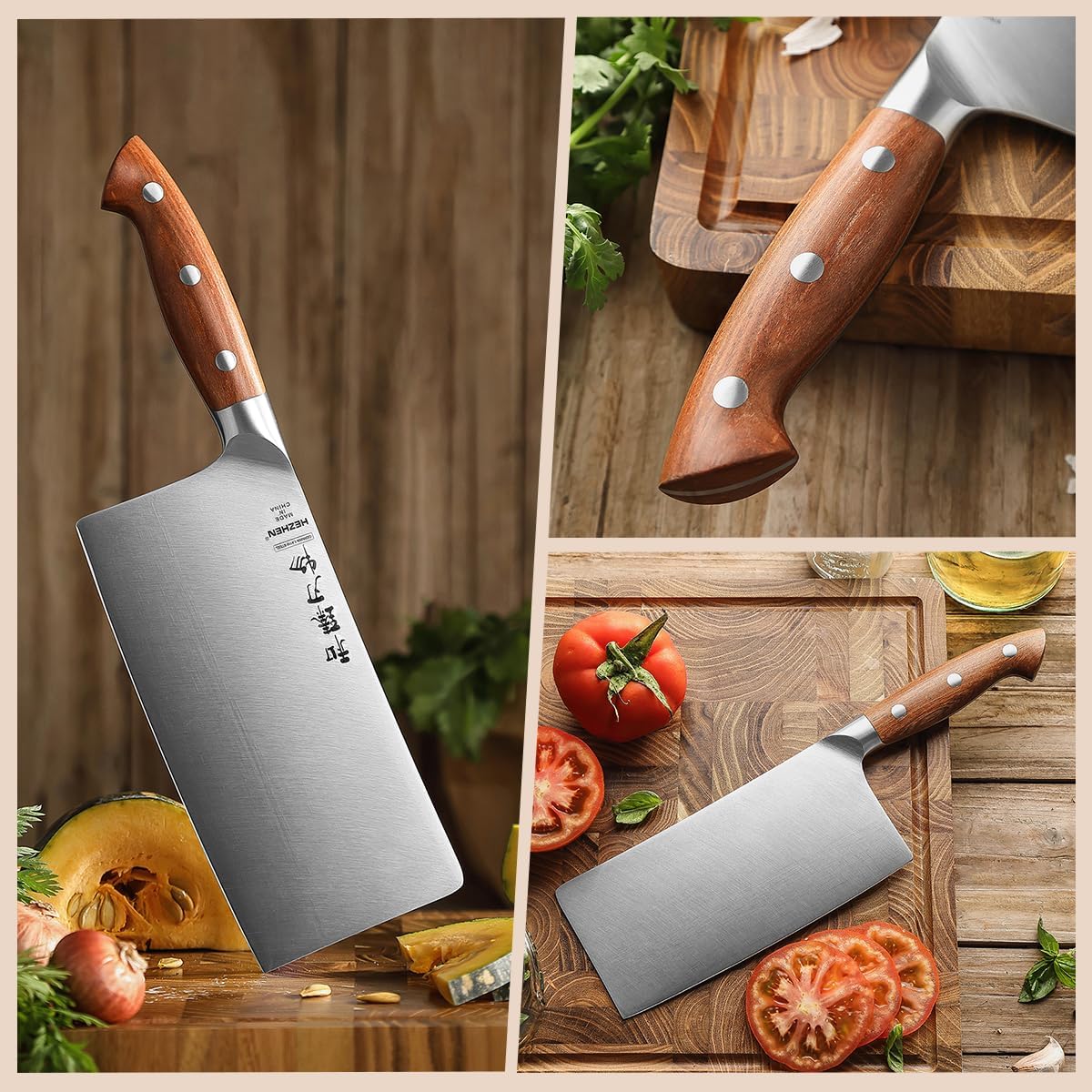 HEZHEN 18 см сатър, професионален китайски готварски нож, остър кухненски нож от немска стомана, нож за рязане на зеленчуци и месо, ергономична дръжка от секвоя